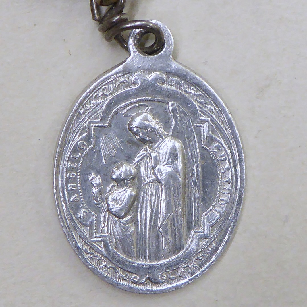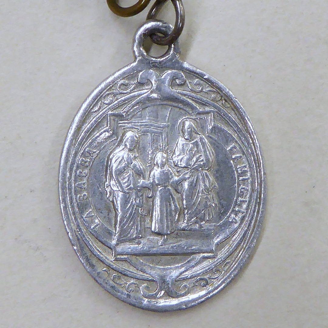 Draagpenning met H. Familie, kz. engelbewaarder met kind
