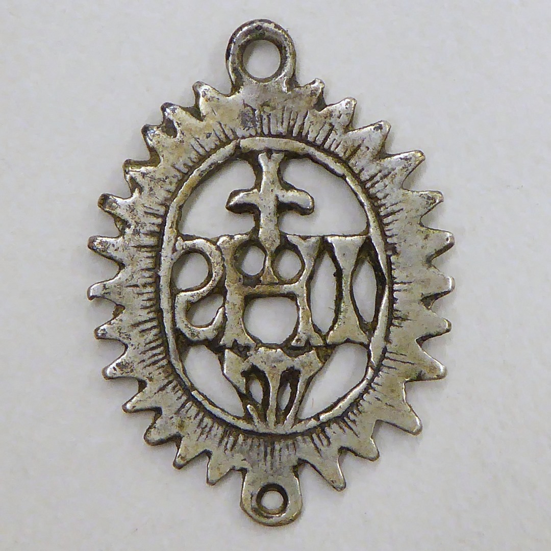 Hanger, ajour, met IHS, jezuietenmonogram, in stralenkrans