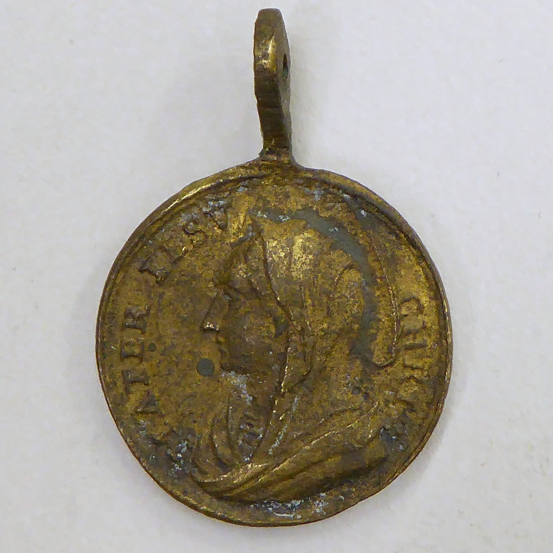 Draagpenning met portret van Jezus en profil, kz. H. Maria en profil