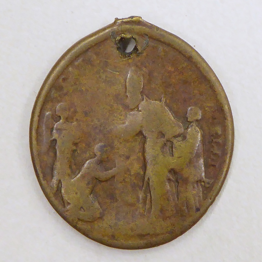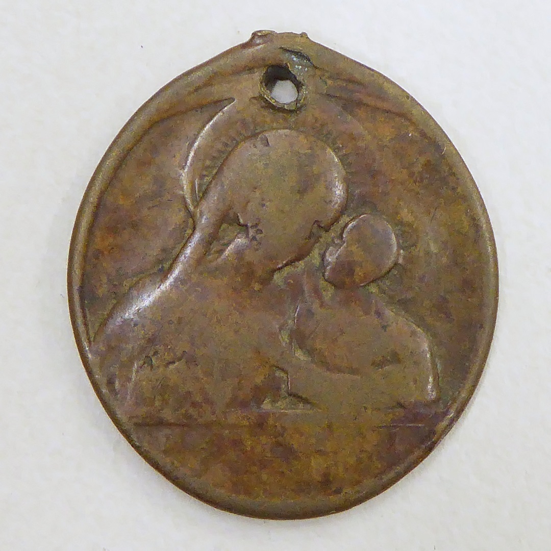 Draagpenning met Maria met kind, kz. scène met bisschop