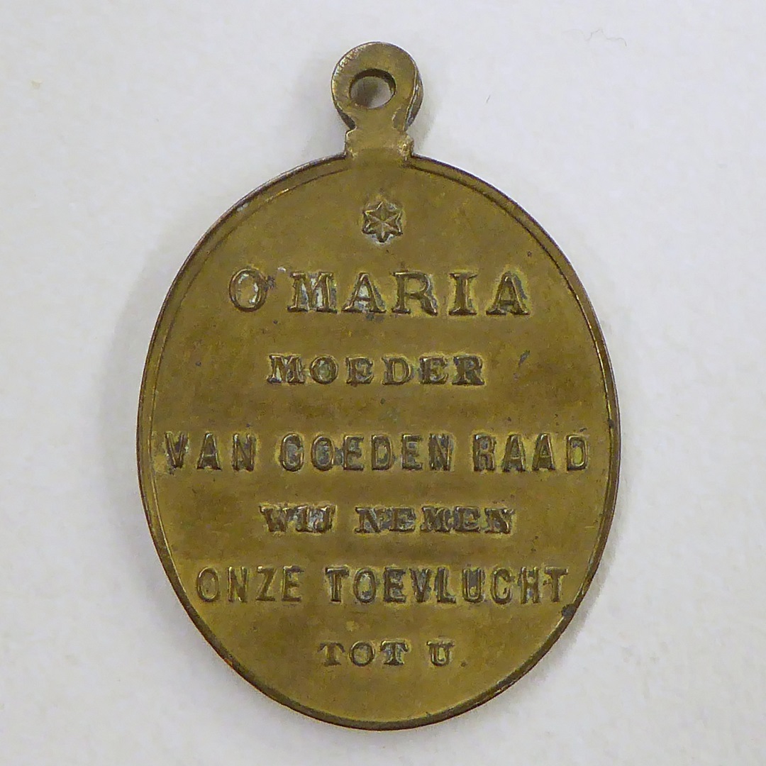 Draagpenning O.L. Vrouw van Goede Raad met Maria met kind, kz. met "O Maria moeder van goeden ..."