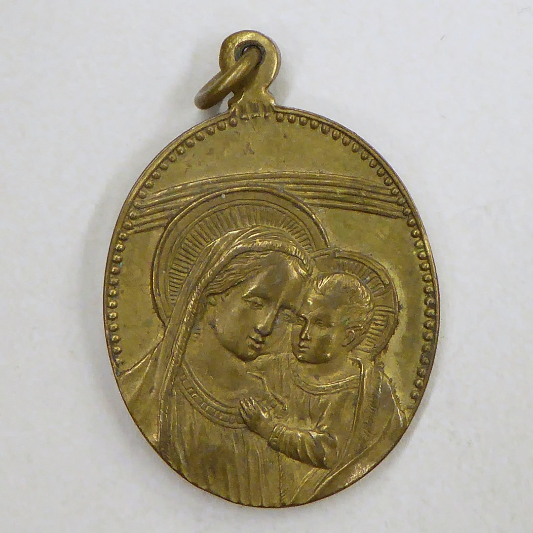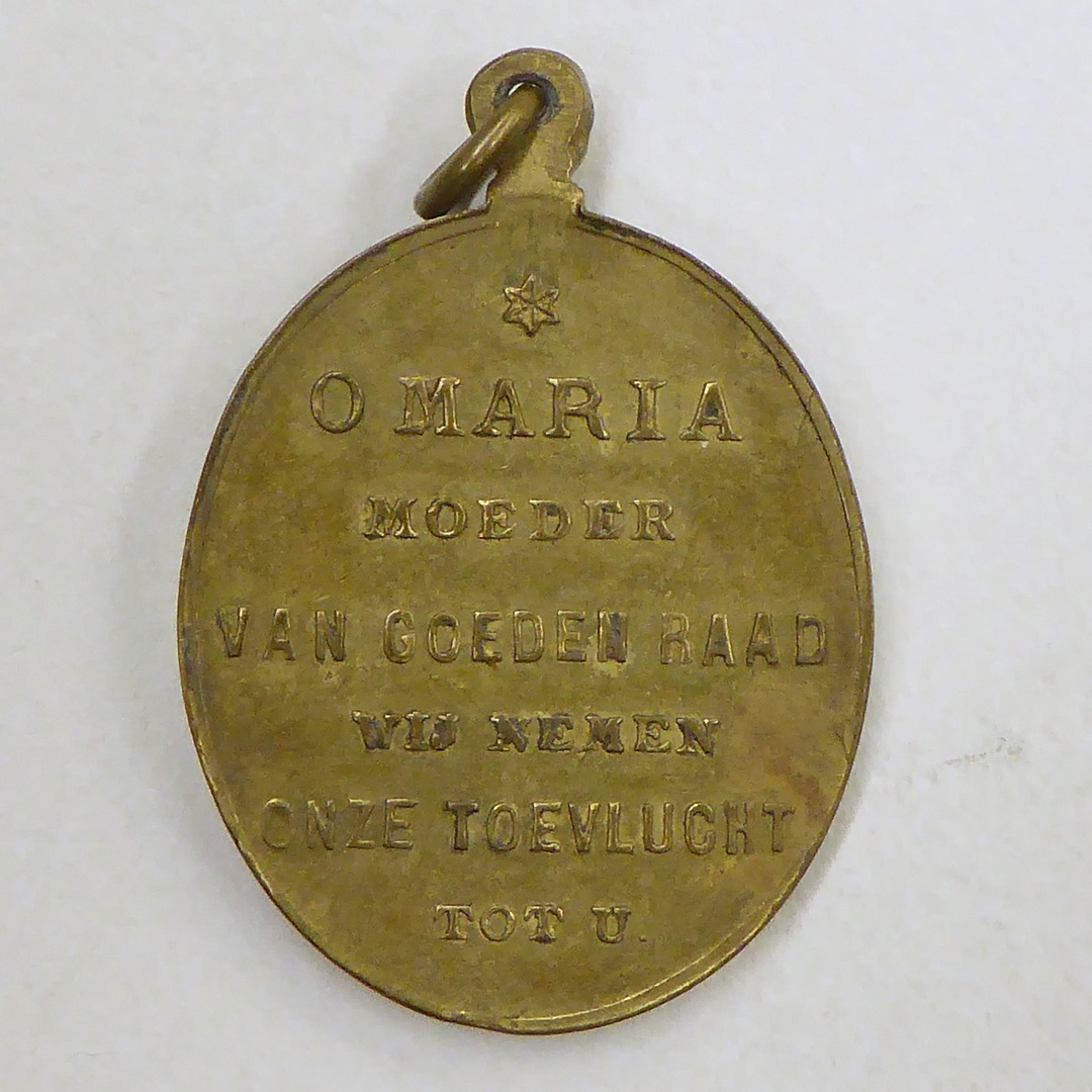 Draagpenning O.L. Vrouw van Goede Raad met Maria met kind, kz. met "O Maria moeder van goeden ..."