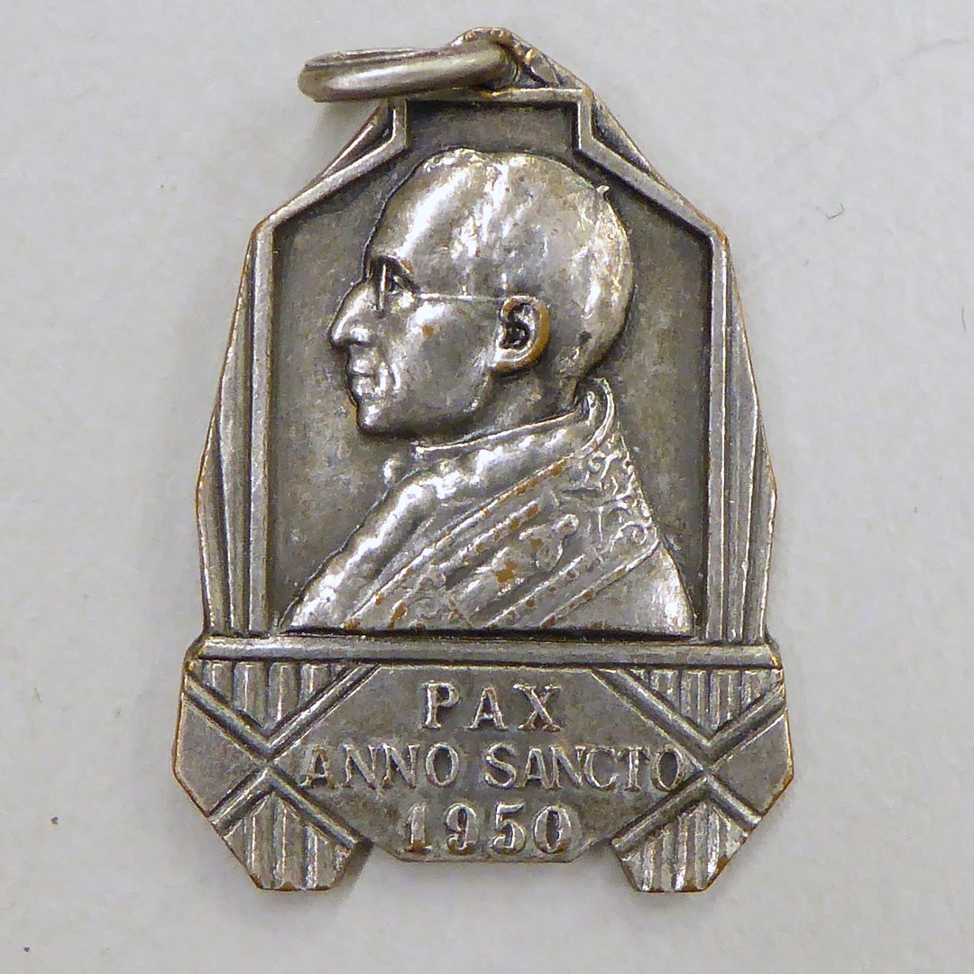 Draagpenning H. Jaar met portret paus Pius XII, kz. vredesduif boven de wereld