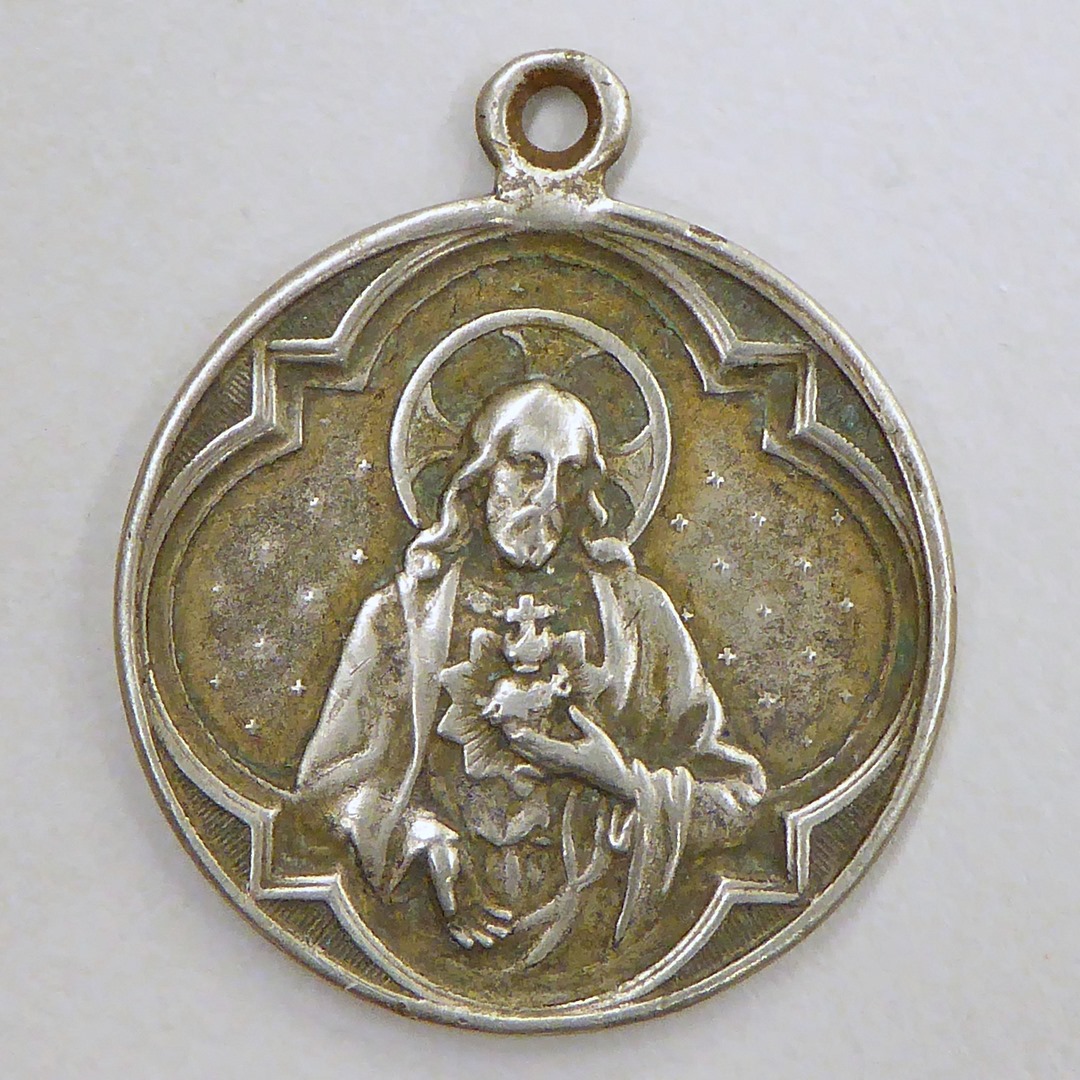 Draagpenning Apostolaat des Gebeds met pinksterwonder, kz. Christus met H. Hart
