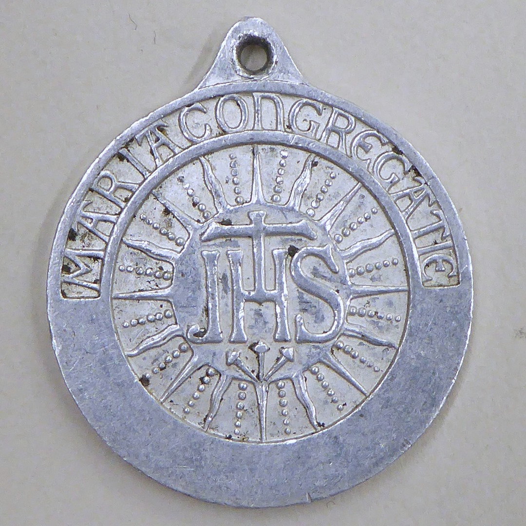 Lidmaatschapspenning met Maria met kind, kz. met "Mariacongregatie" en IHS in stralenkrans