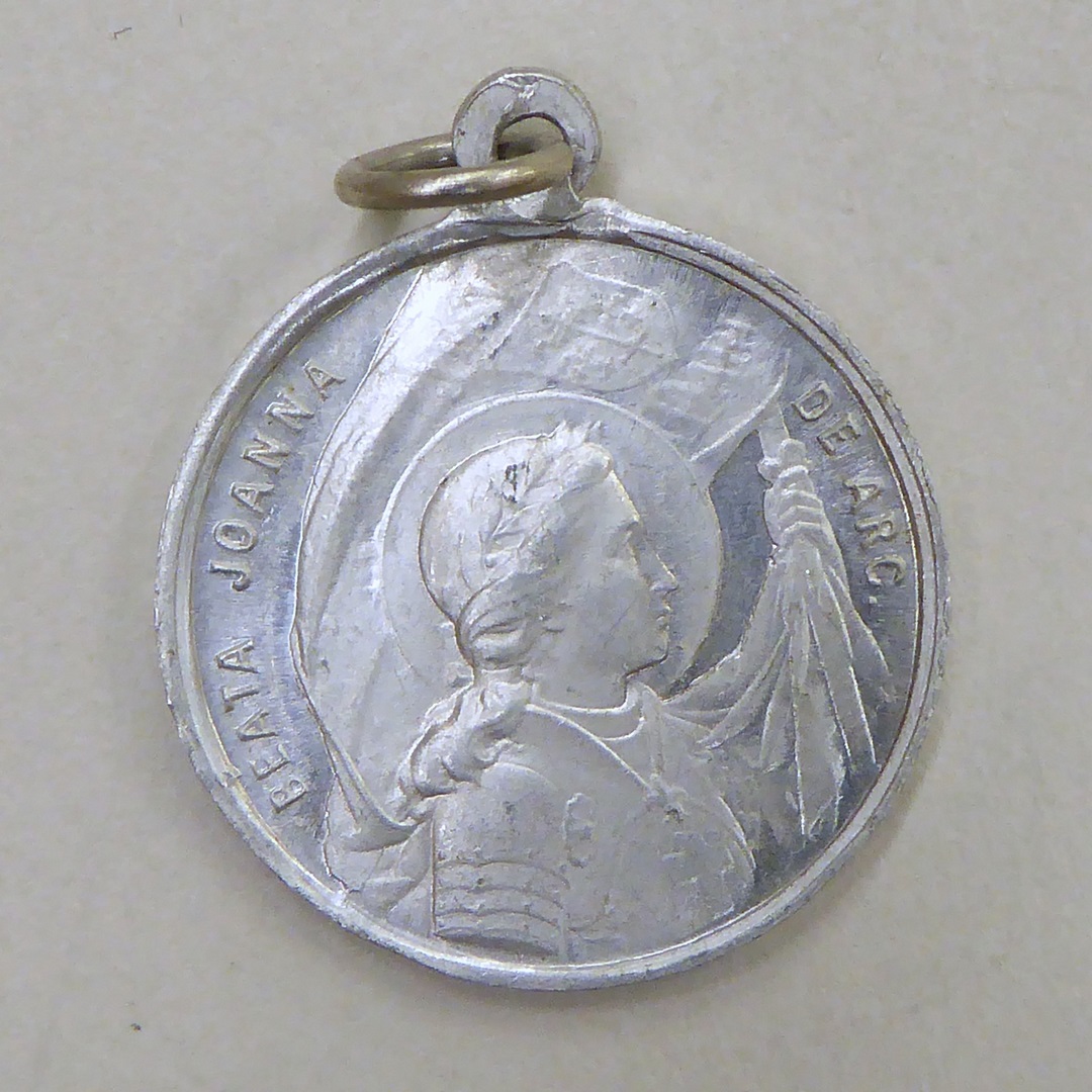 Draagpenning met Zalige Jeanne d'Arc, kz. 25-jarig bisschopsjubileum paus Pius X met portret
