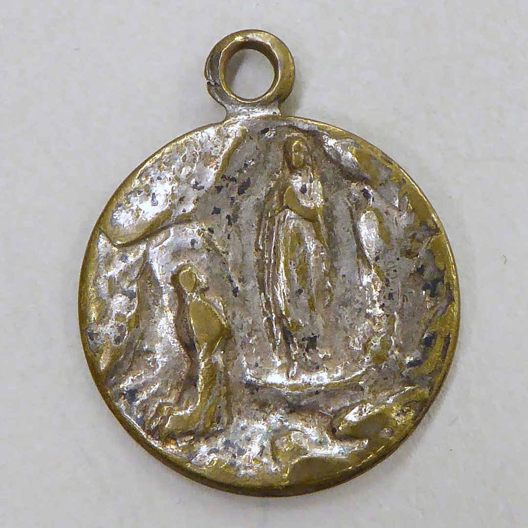 Draagpenning met portret Maria en profil, kz. O.L. Vrouw van Lourdes met verschijning