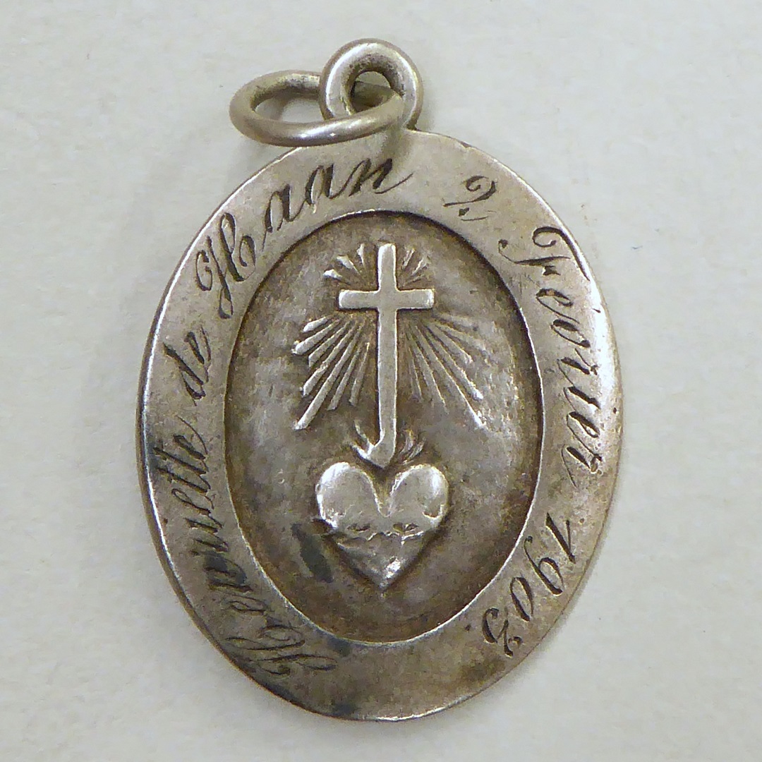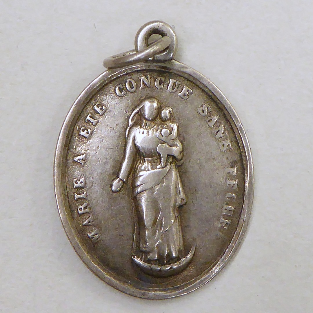 Draagpenning met O.L. Vrouw Onbevlekt Ontvangen, kz. met "Henriette de Haan ...", H. Hart en kruis