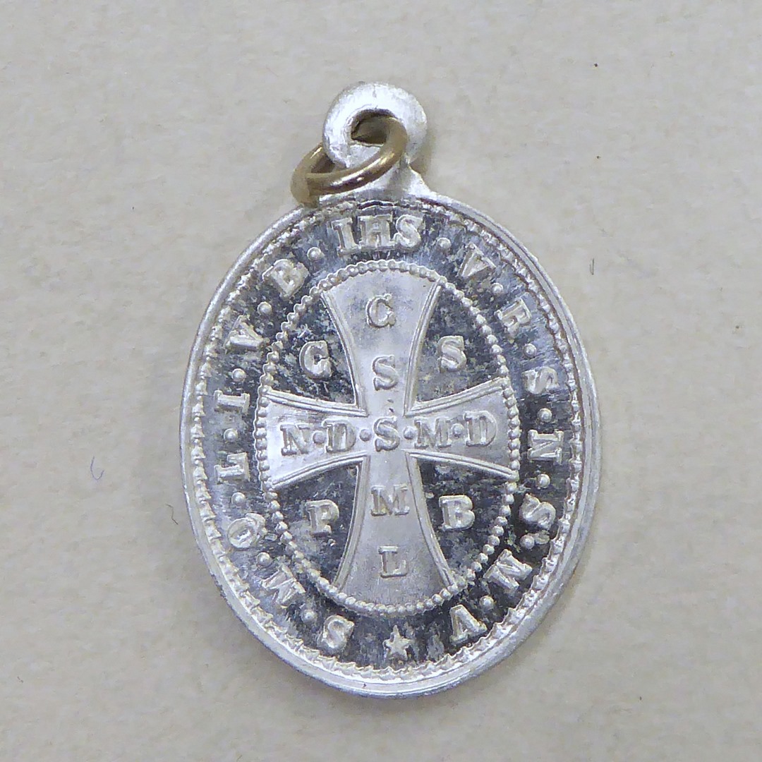 Benedictuspenning met H. Benedictus, kz. Benedictuskruis
