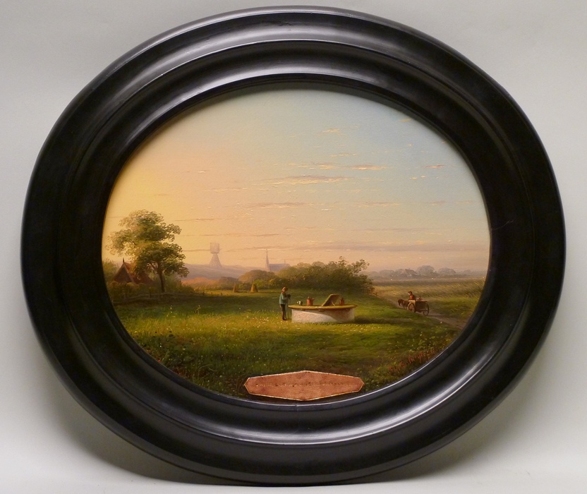 Gesigneerd en gedateerd rechtsonder: B:G:ten Berge./ 1860. Middenonder is een stukje leer op het paneel geplakt met het opschrift: E sepulchro ejus fons aquae dulcissimae scaturiit (Uit zijn graf borrelde een bron op van zeer zoet water).