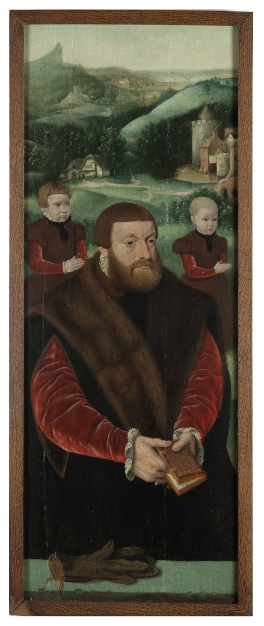 Stichter met twee zonen (linkerluik)