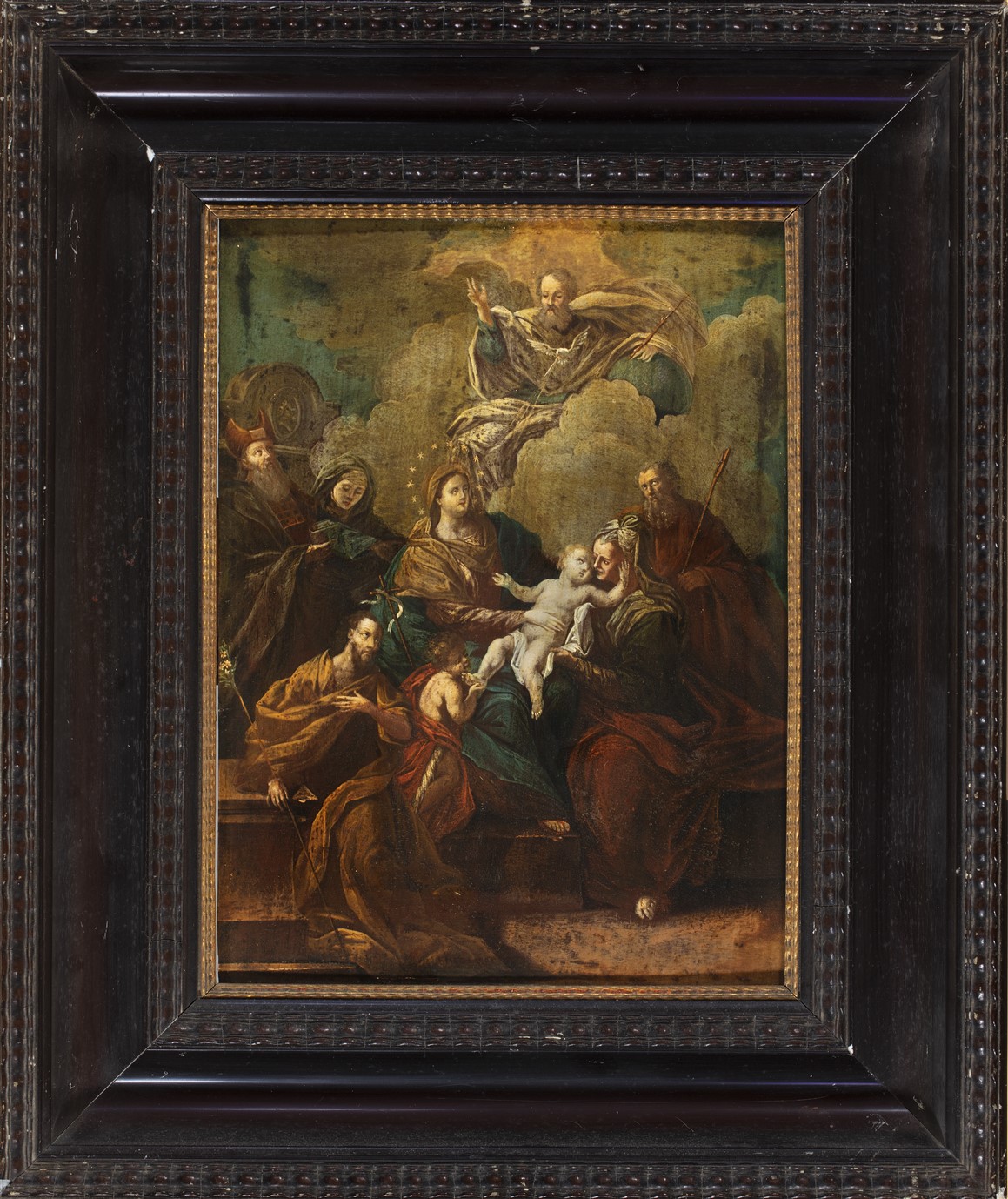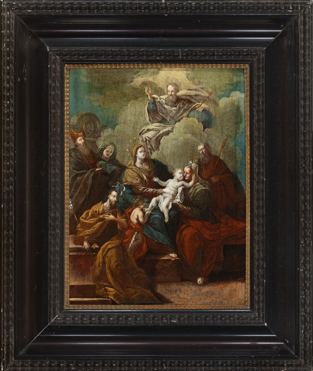 Anna-te-drieën met God de Vader, H. geest, Johannes de Doper en andere heiligen