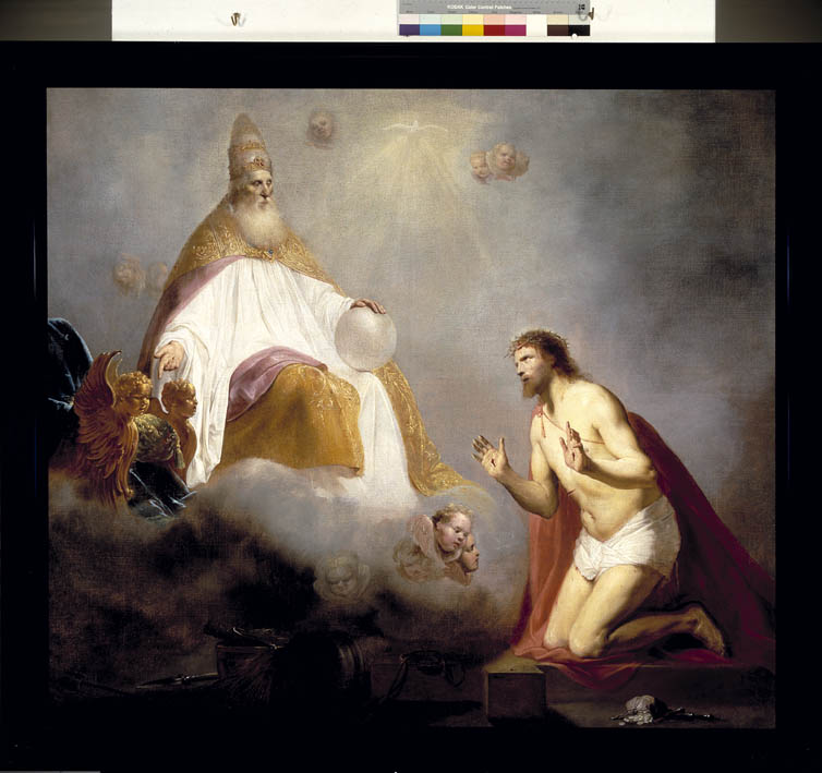 God de Vader wijst Christus in de hemel de zetel aan zijn rechterhand
