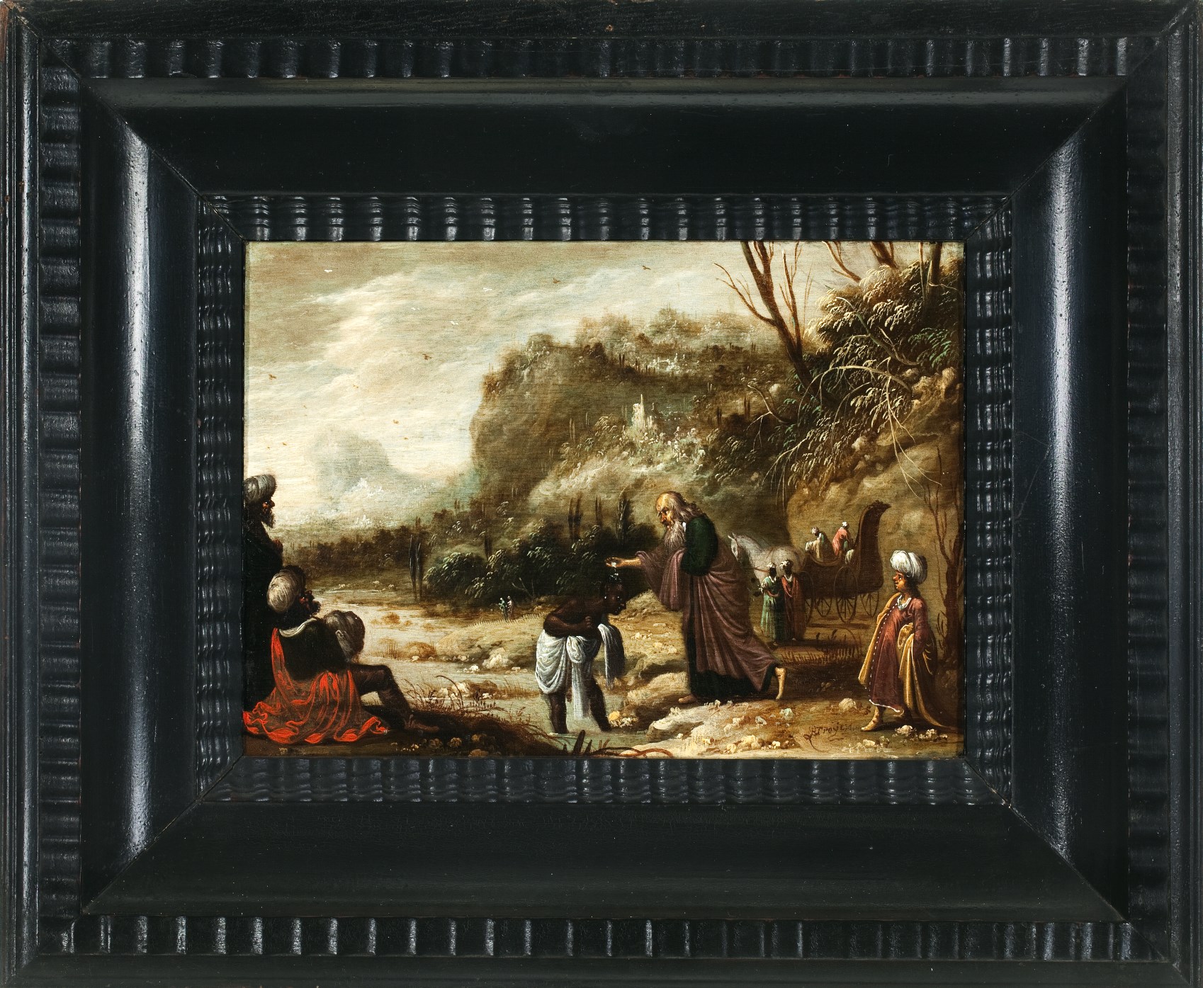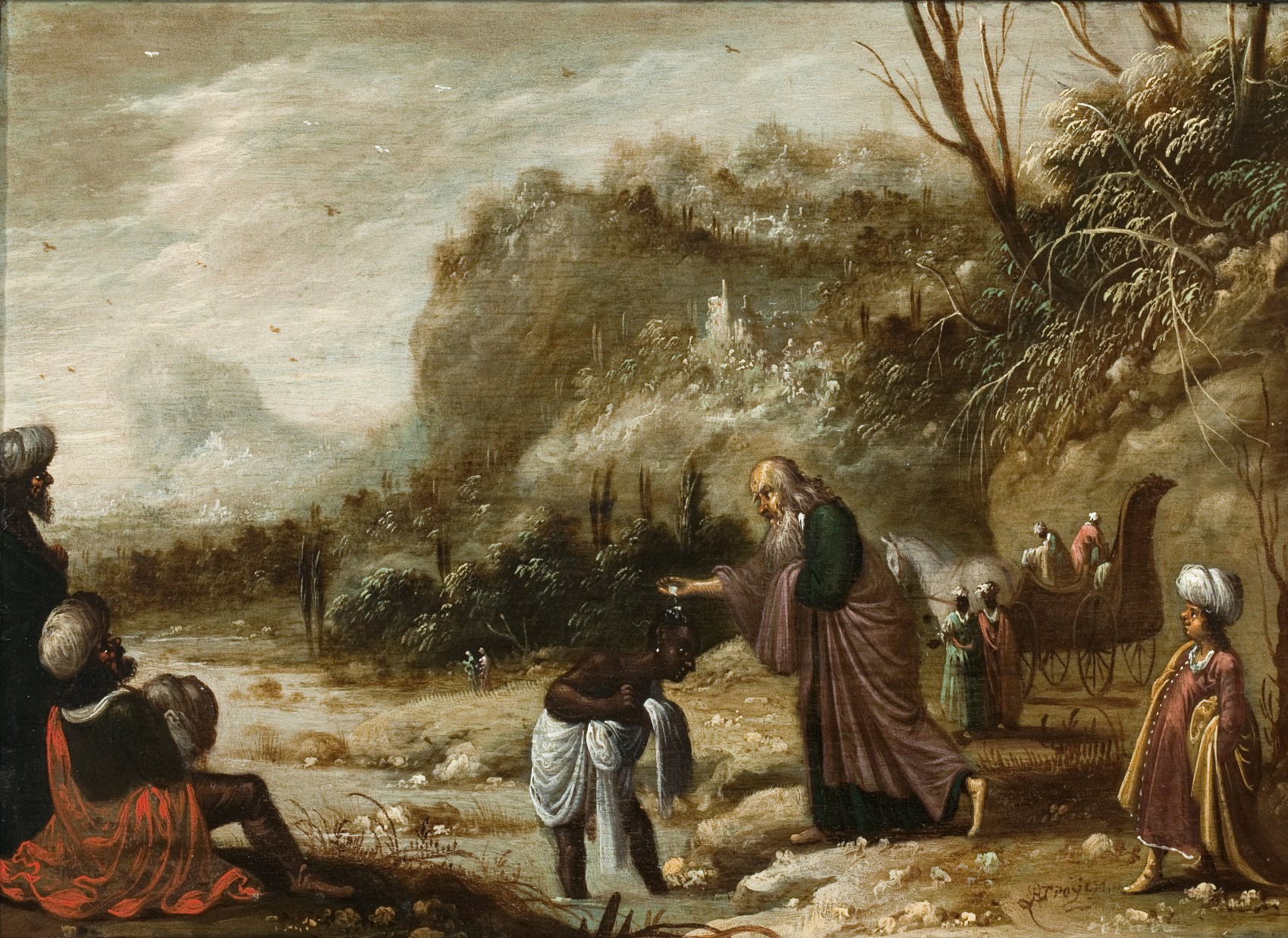 Gesigneerd op het rotsblok rechtsonder: RTroÿe