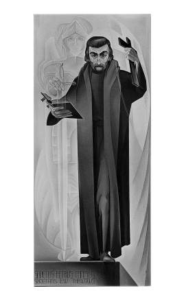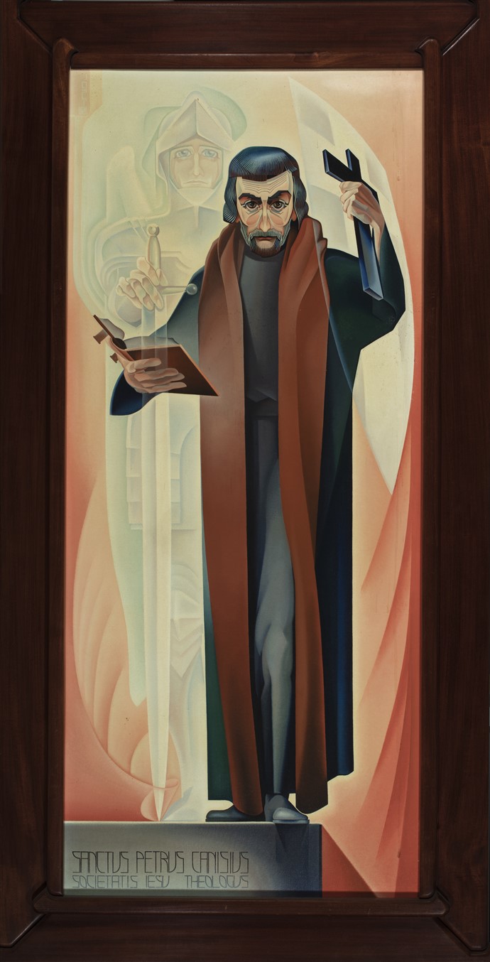 Gemonogrammeerd en gesigneerd linksboven: WA (ineen) 1927. Op de sokkel het opschrift: SANCTUS PETRUS CANISIUS / SOCIETAS IESU THEOLOGUS.