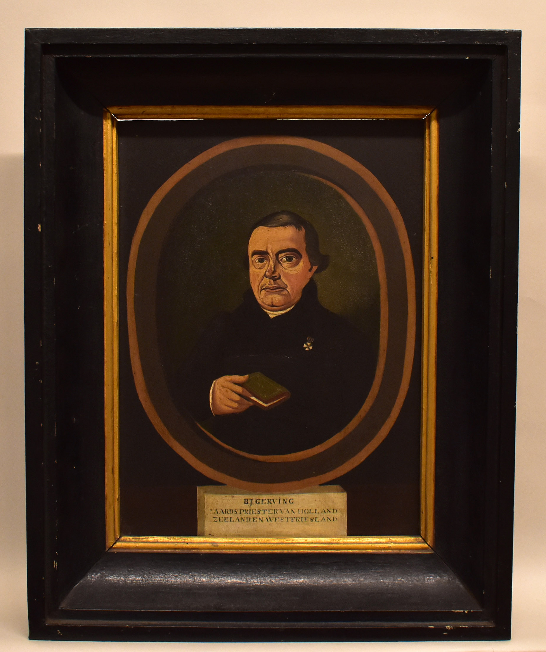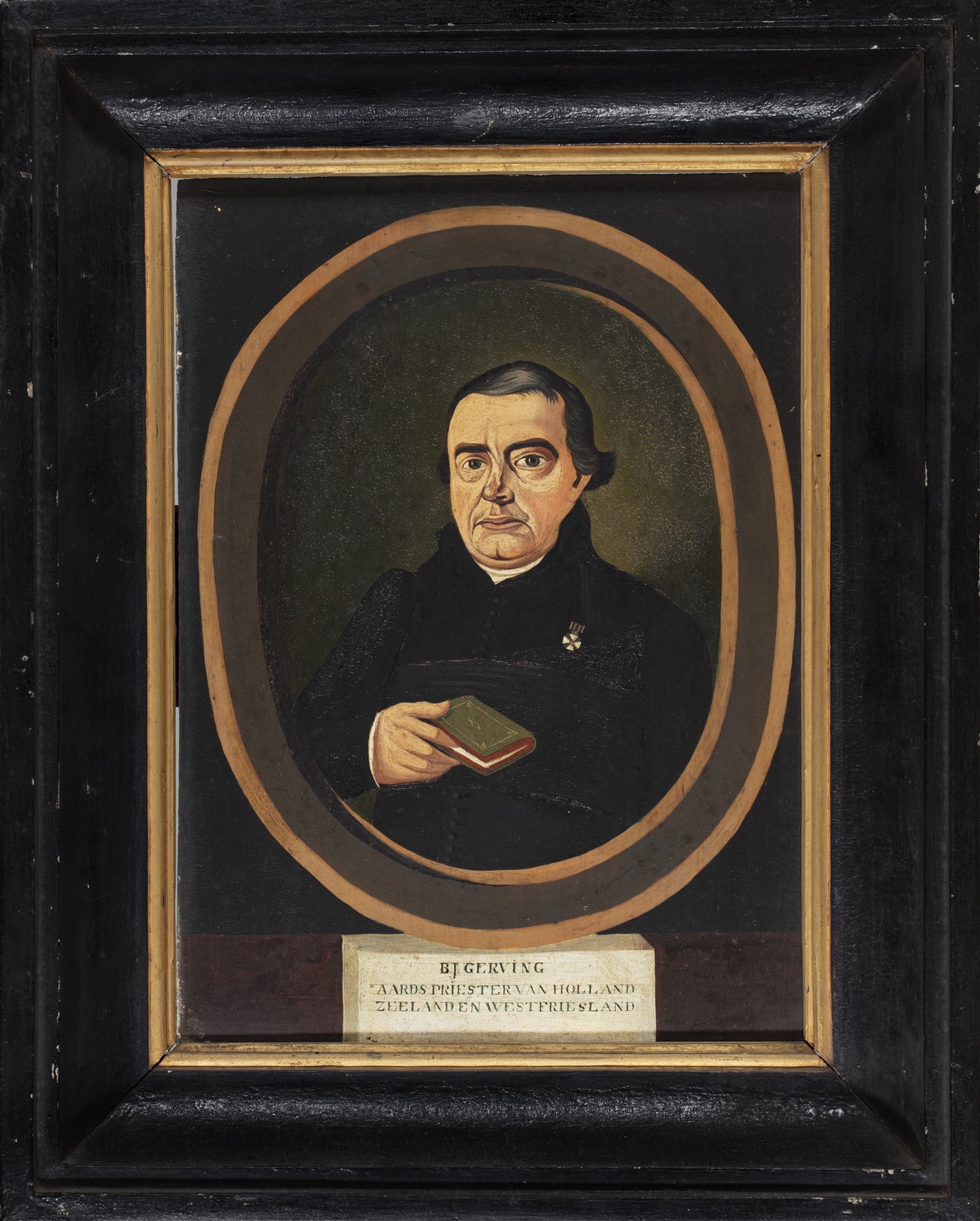 In een geschilderd wit kader het onderschrift: B.J. GERVING / AARDSPRIESTER [sic] VAN HOLLAND / ZEELAND EN WESTFRIESLAND.