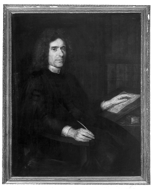 Gesigneerd op het opengeslagen boek: …. / A. De Cox[ie] / fec. A. Opschrift op de achterzijde van het doek: ‘Nº. 4 Nicolavs Van Der Meer / Successor Iois Wandelman / obiit 172[4?]’ (Nr. 4. Nicolaas van der Meer, opvolger van Joannes Wandelman, stierf in 172.).