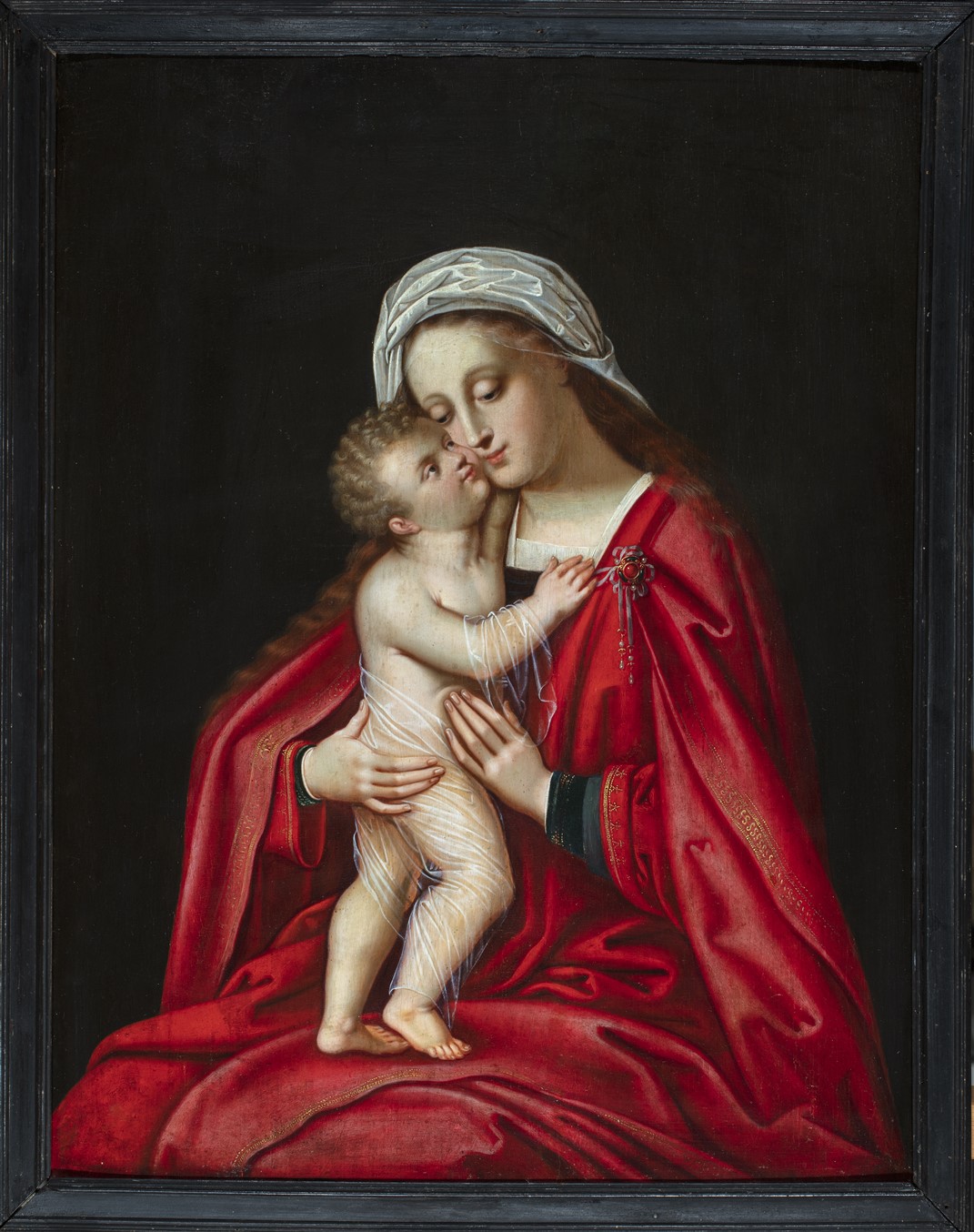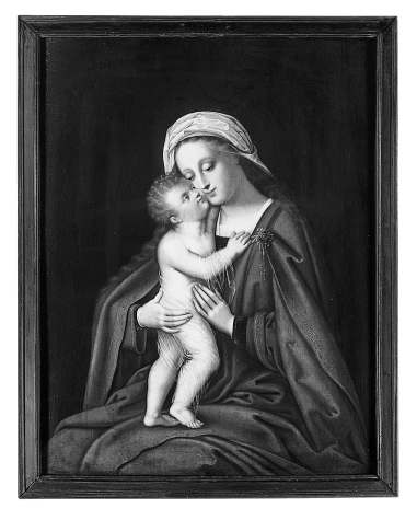 Een van de vele kopieën naar een vroeg 16de-eeuws model, ontwikkeld in Brugge en waarschijnlijk geïnspireerd op een compositie van Rogier van der Weyden (zie ook BMH s77). Naar de vorm vertoont dit werk veel gelijkenis met versies toegeschreven aan Adriaen Isenbrant (vergelijk Friedländer 1967-1976, 11, pl. 140).