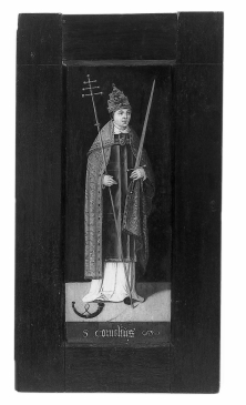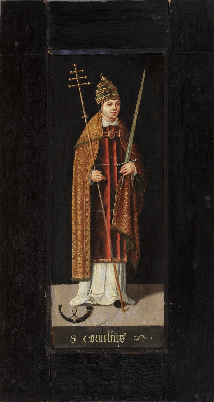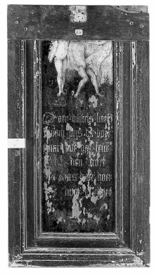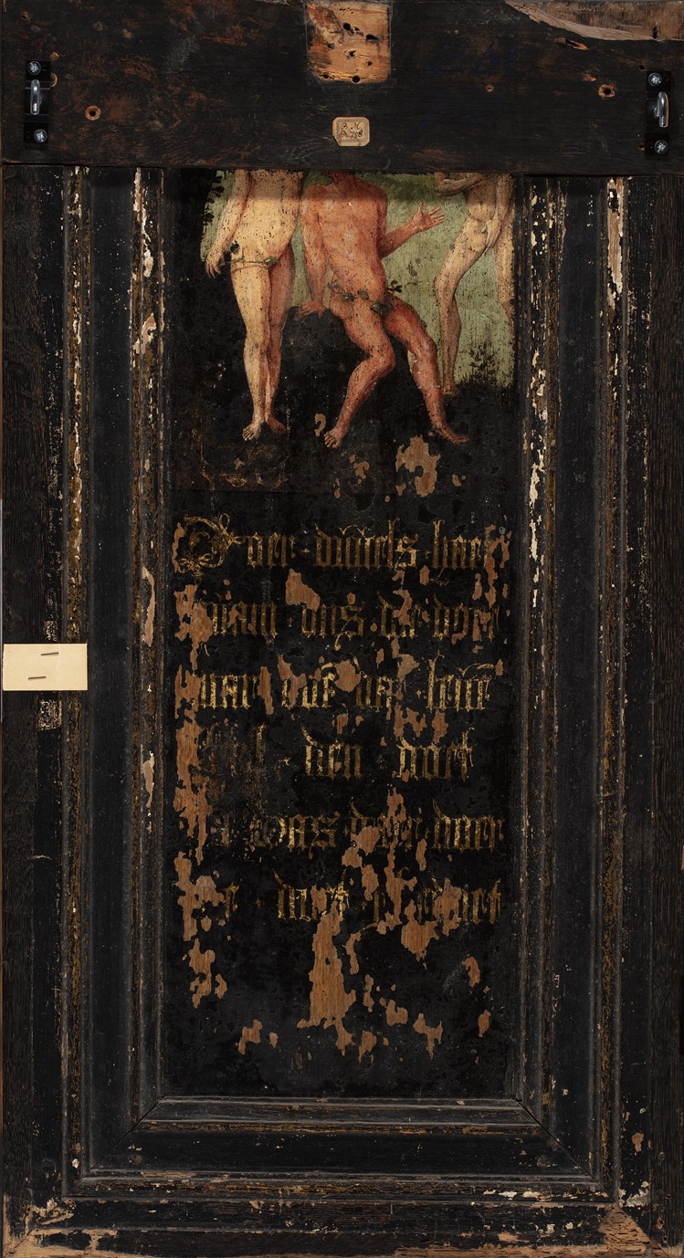 Op de sokkel de inscriptie: S CORNELIUS. Op de achterzijde, ten dele afgebladderd, Adam en Eva, met tekst