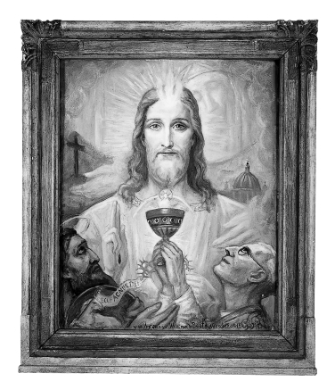 Zegenende Christus met Johannes de Doper en pastoor Thomas Kwakman
