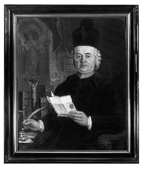 Gesigneerd en gedateerd op de achterzijde van het doek: JVHorstok fecit. 1771 (JVH ineen). Op de brief in de hand van de geportretteerde: Rdo Adm Ac / Amplissimo Domino / Aymerico van de Capelle / Hollandia Zelandia ac / Westfrisia Archipresbytero / Pastori in / Vogelenzang. Op het briefje onder de inktpot: pastori [...]ytero / ...