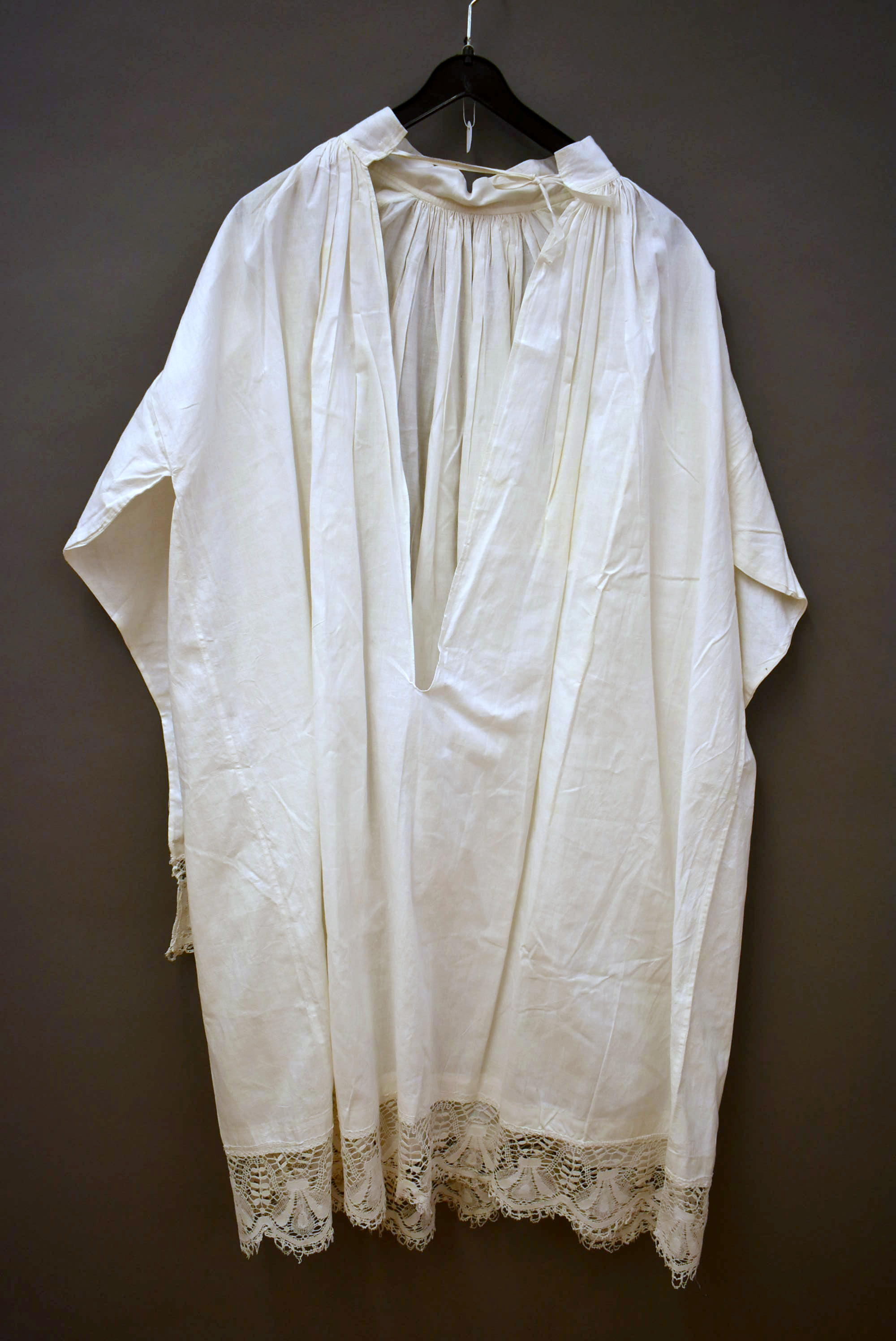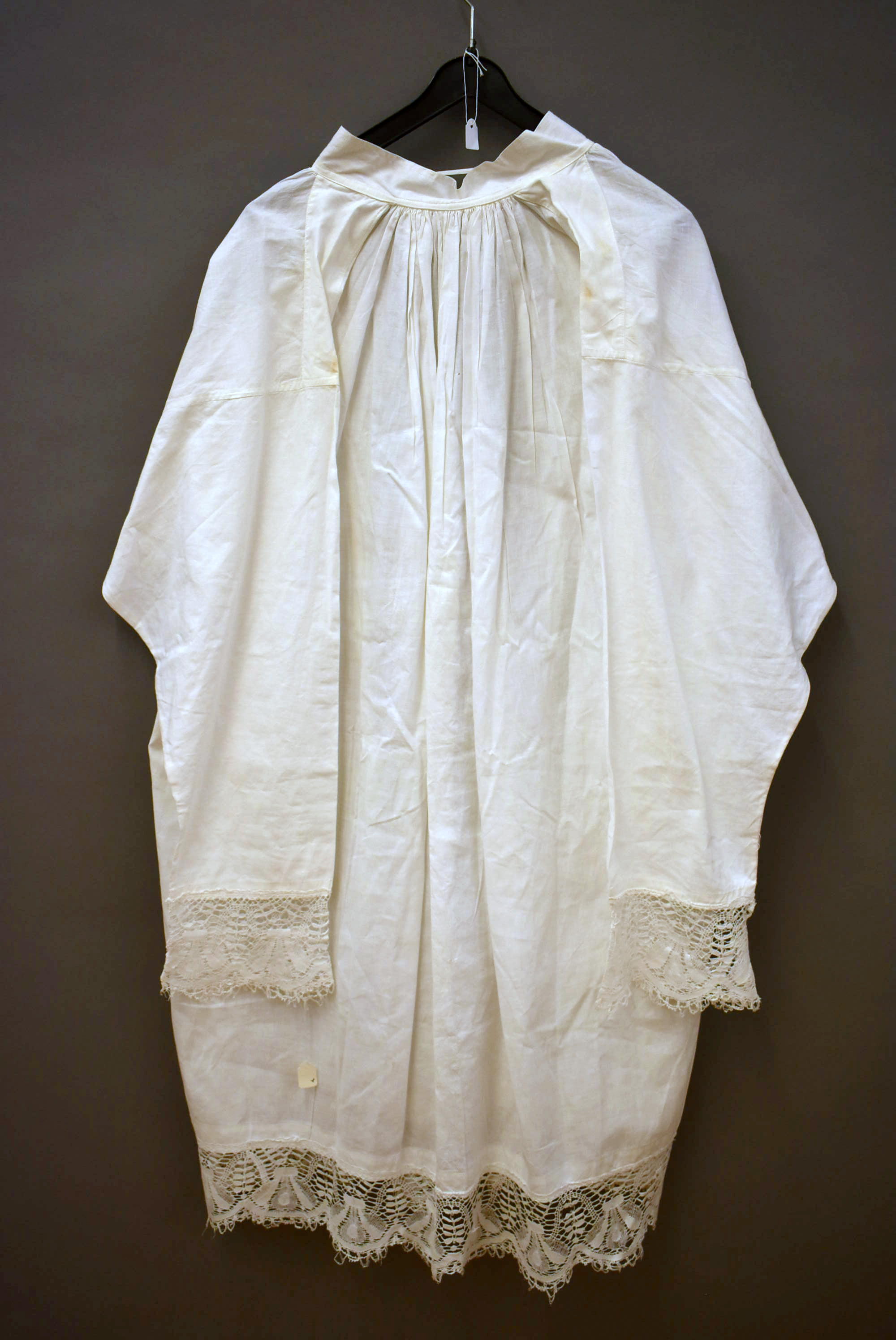 Kleding kindsheid, witte albe met kantstrook, halssplit met bandje