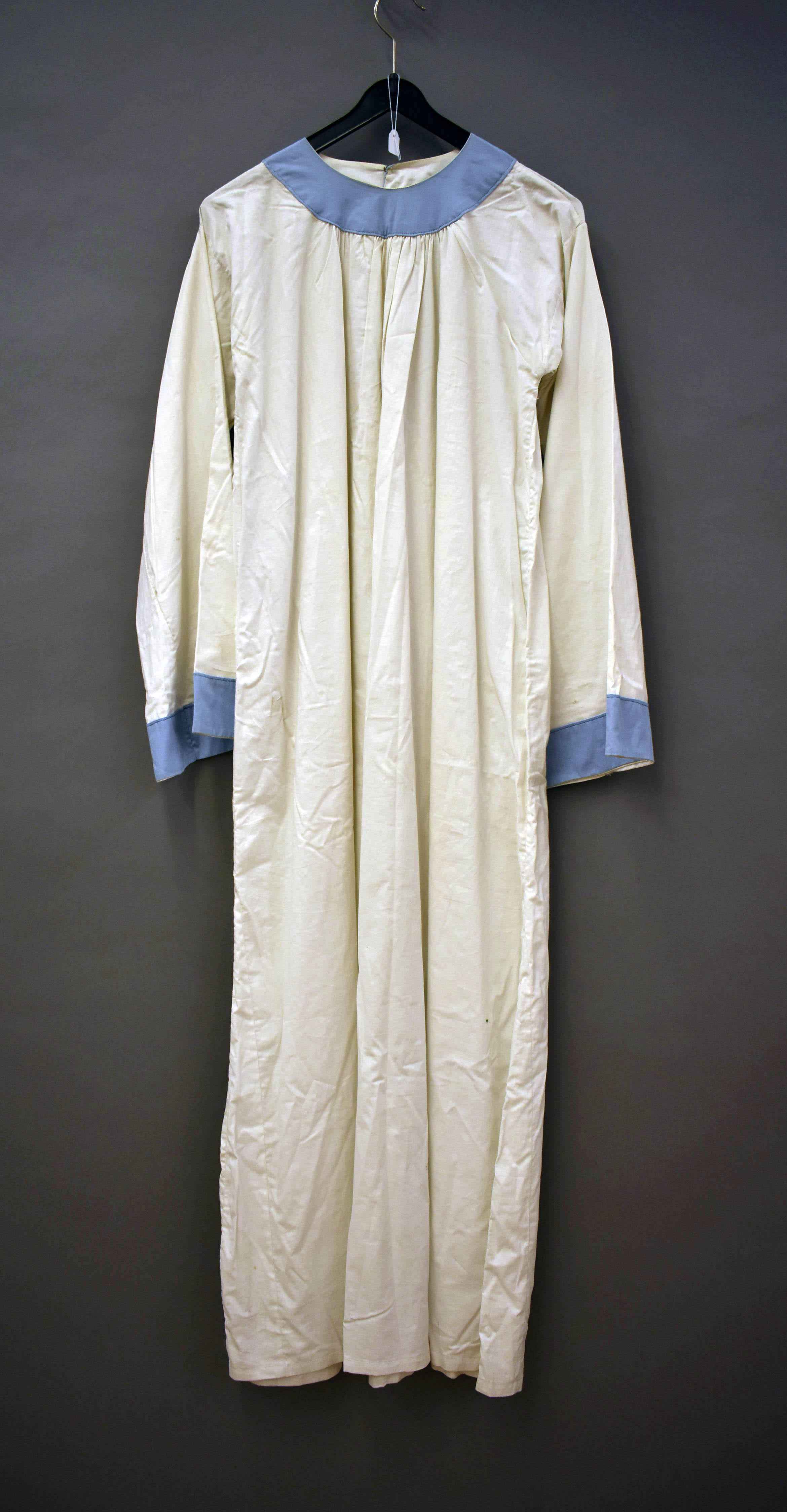 Kleding kindsheid, witte superplie, lichtblauw afgezet