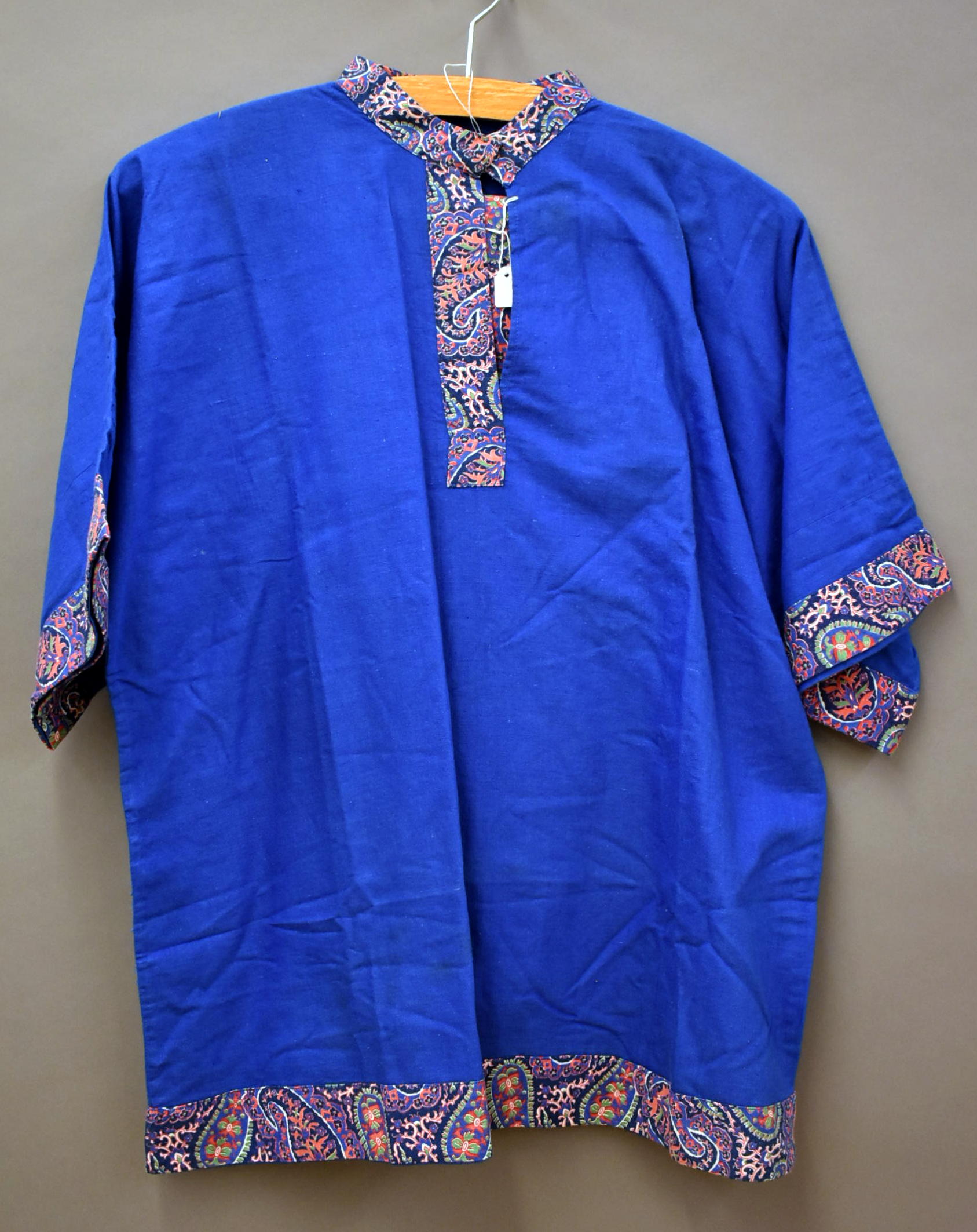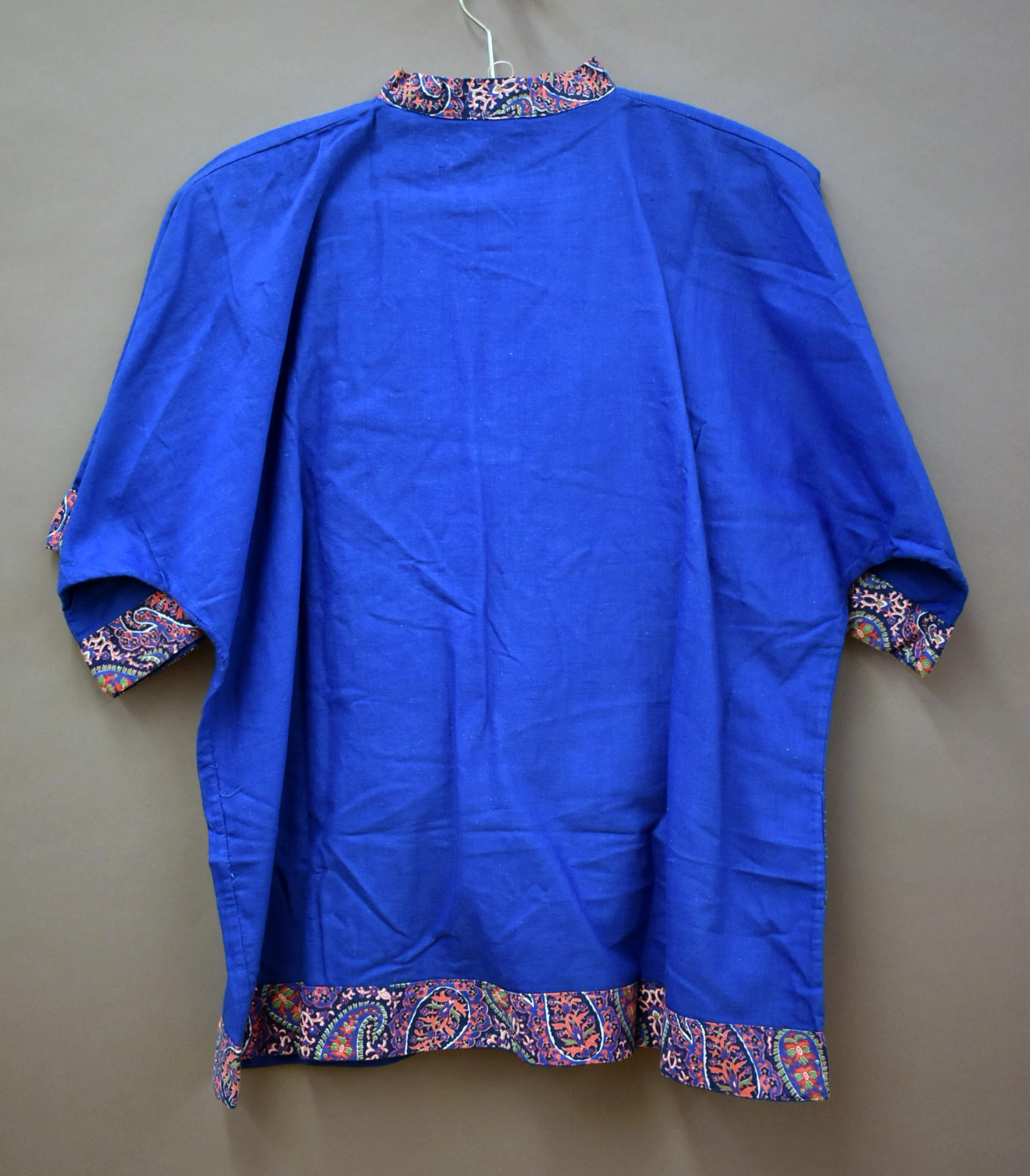 Kleding kindsheid, blauwe blouse van Chinezenpakje met kasjmier patroon