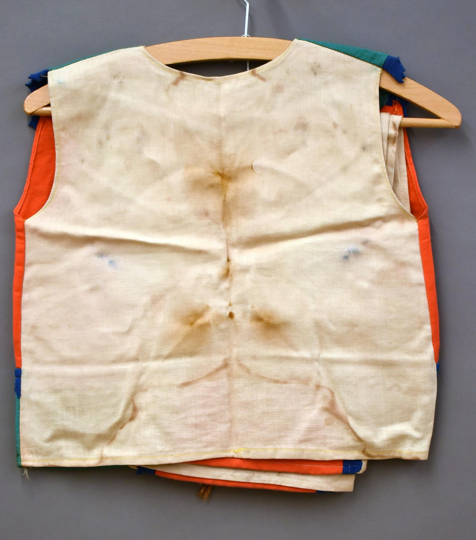 Kleding kindsheid, rood-groen hesje van indianenpak, vetersluiting