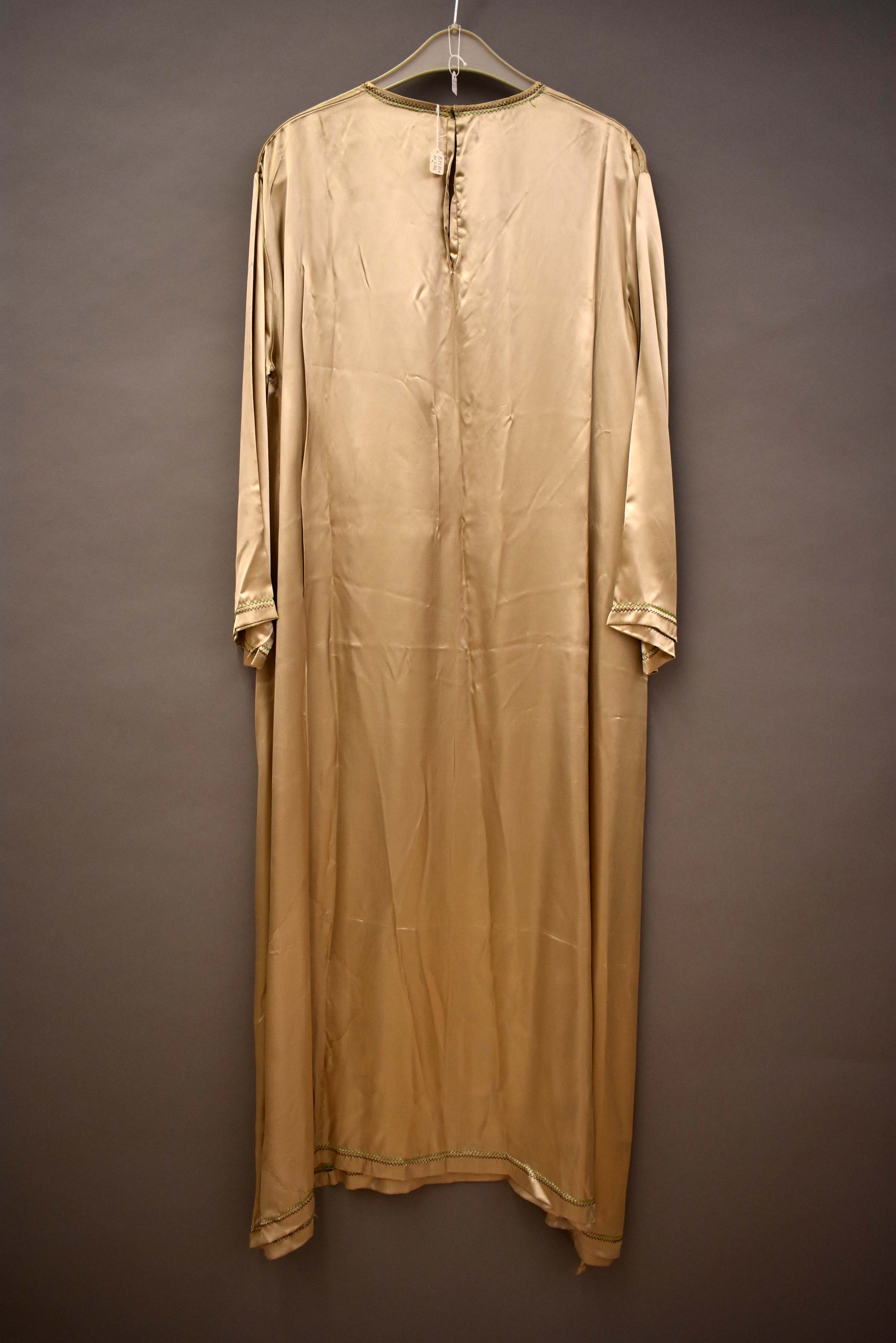 Kleding kindsheid, beige kleed van Anna, bruingroene zigzagband