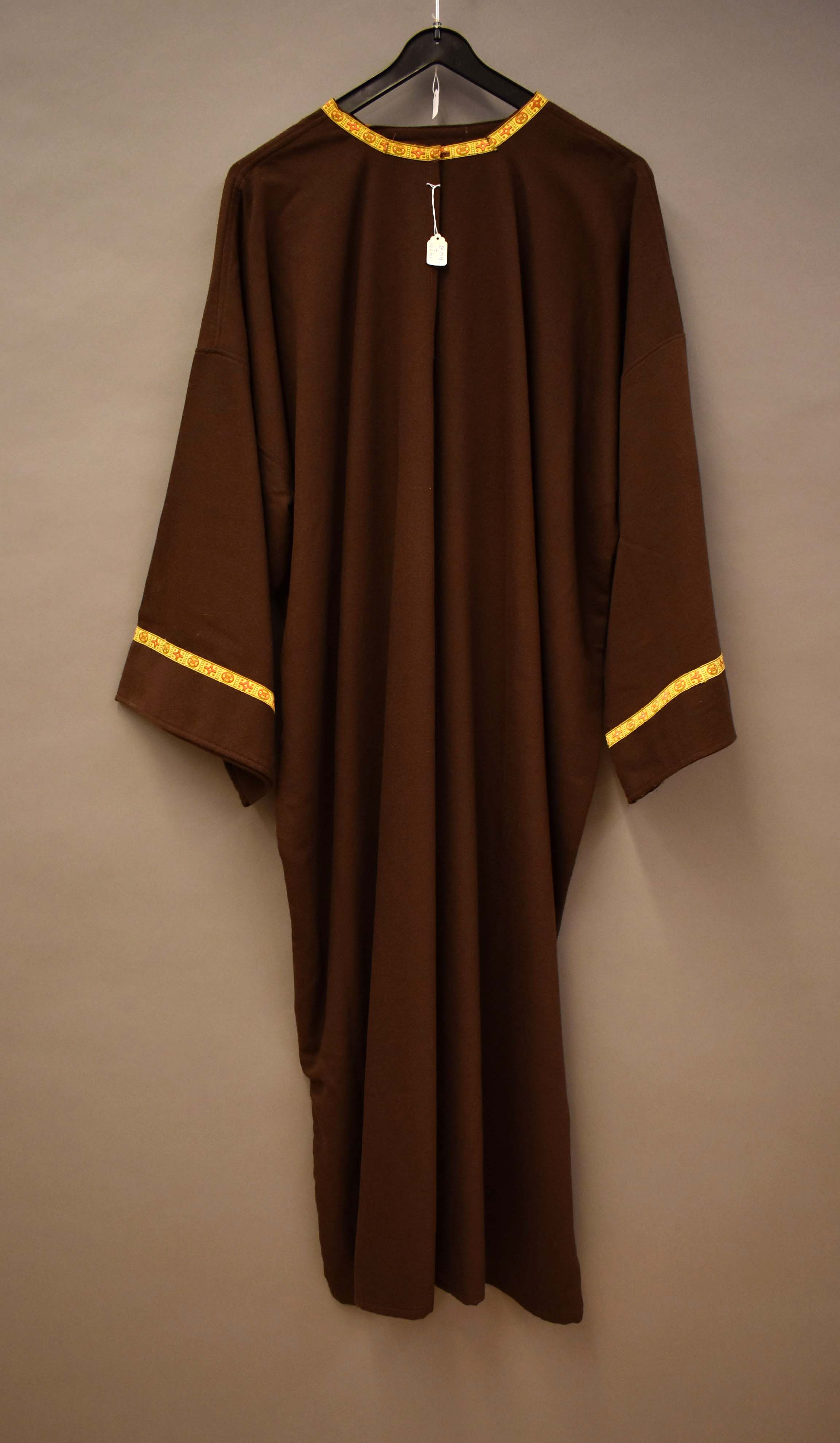 Kleding kindsheid, bruin wollig kleed van Jozef als timmerman