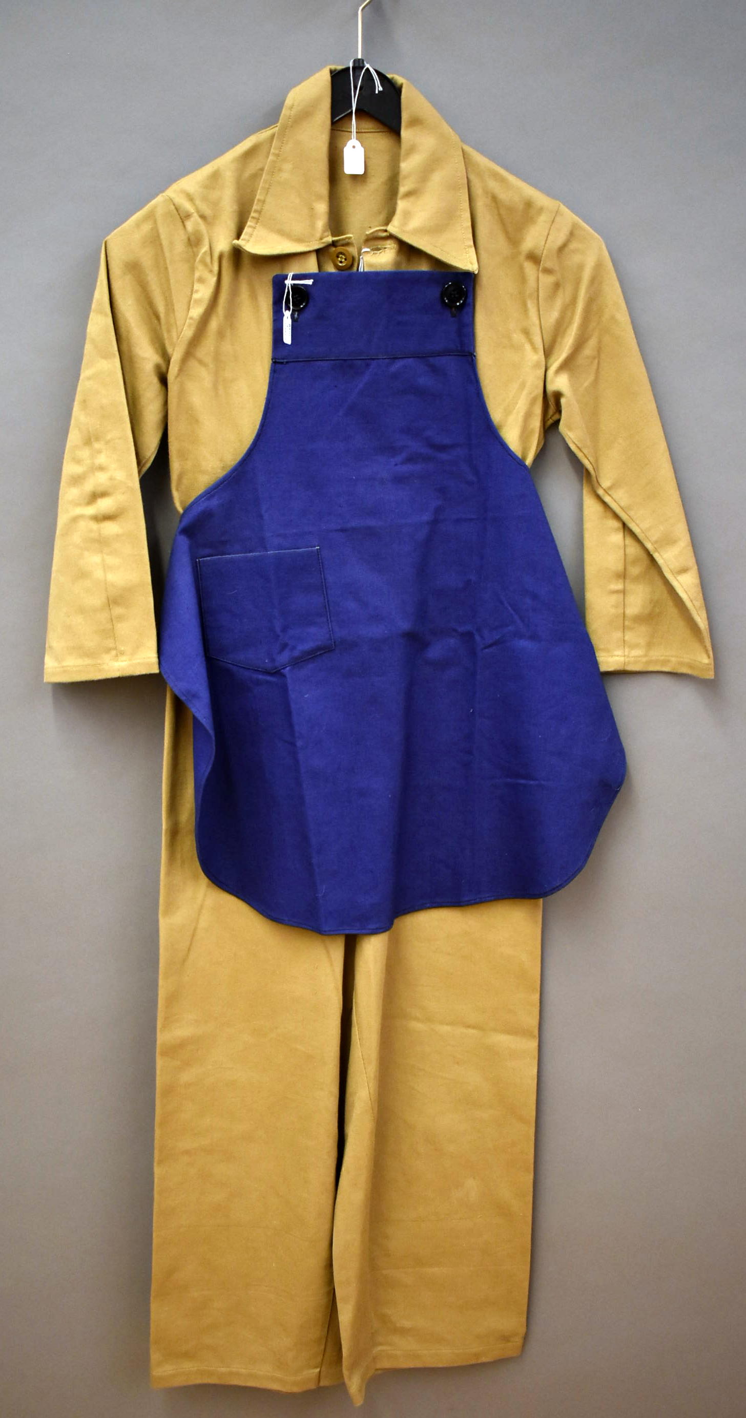 Kleding kindsheid, blauw werkmansschort van begeleiders van Jozef