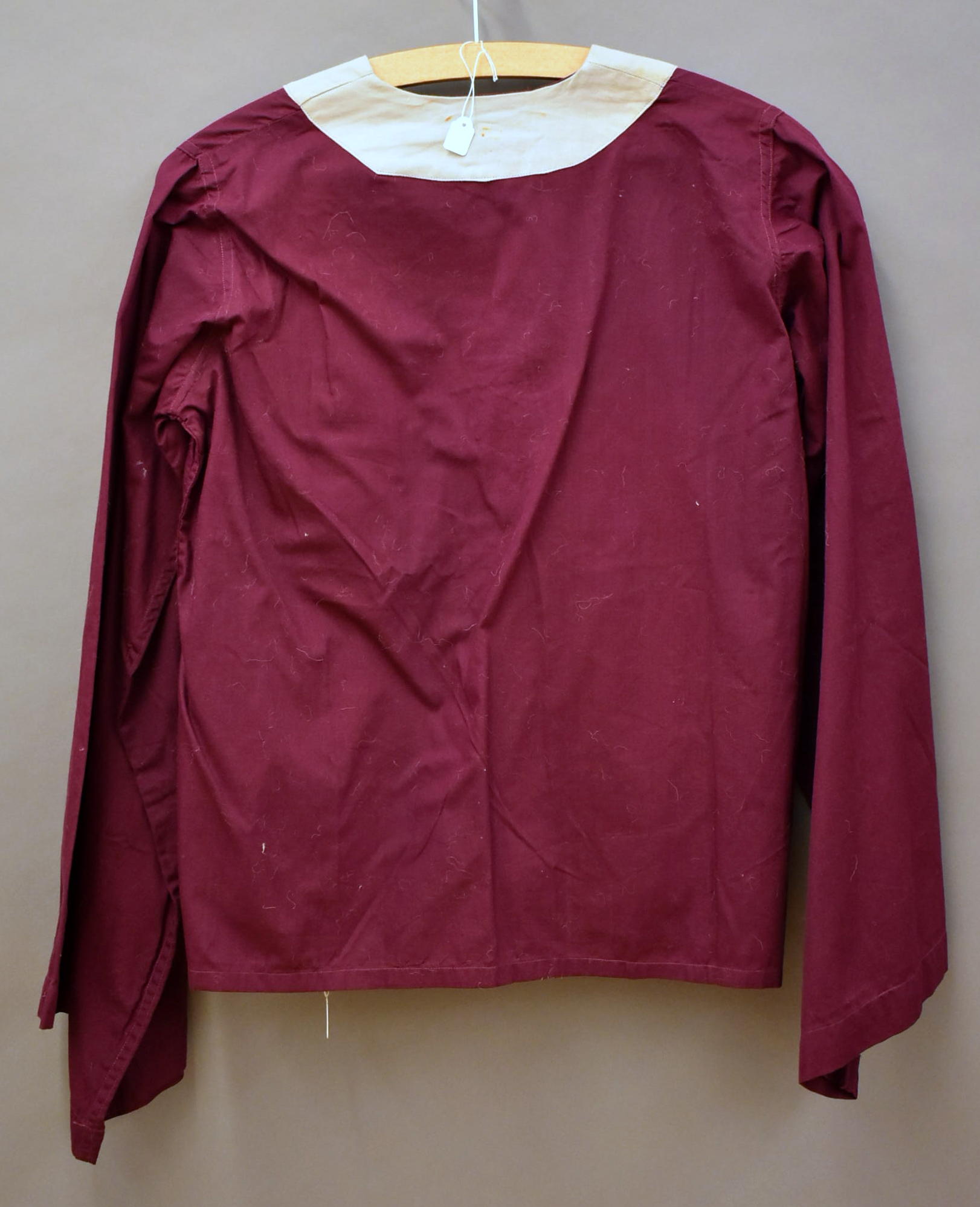 Kleding kindsheid, rood jasje met grijze bies van een hoofdman over tot slaaf gemaakten