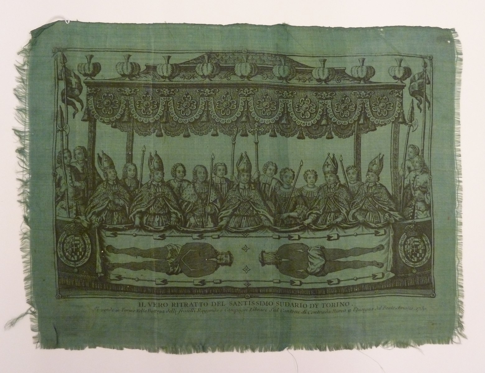 Groene memoriedoek met "Il Vero Ritratto Del Santissimo Sutorio Di Torino", lijkwade Turijn