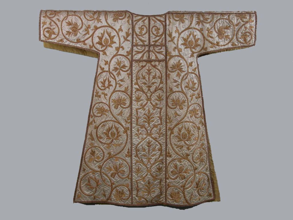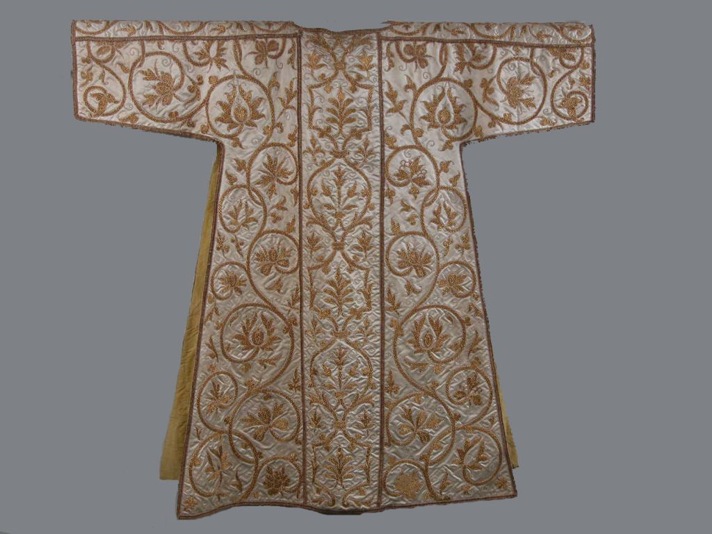 Witte dalmatiek met gouddraadborduursel van bloemen en ranken