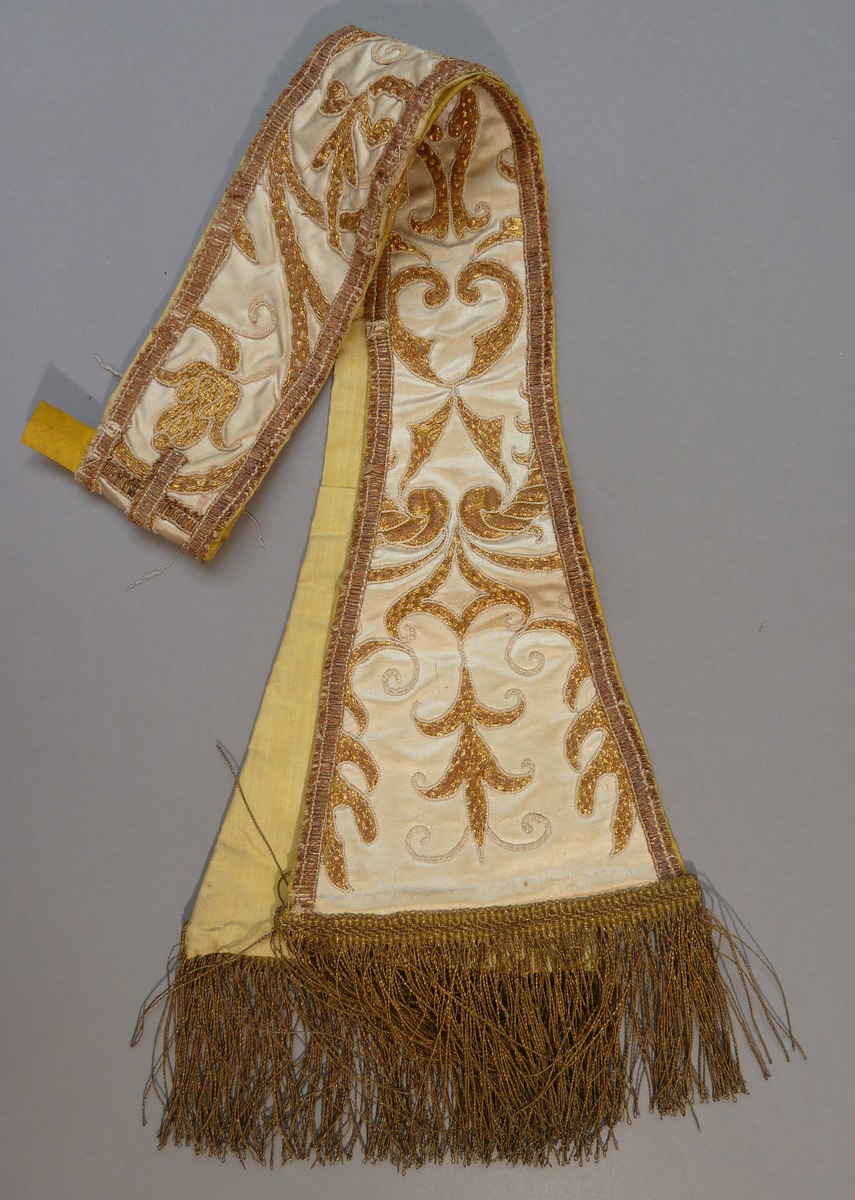 Witte manipel met borduursel van bloemen en ranken