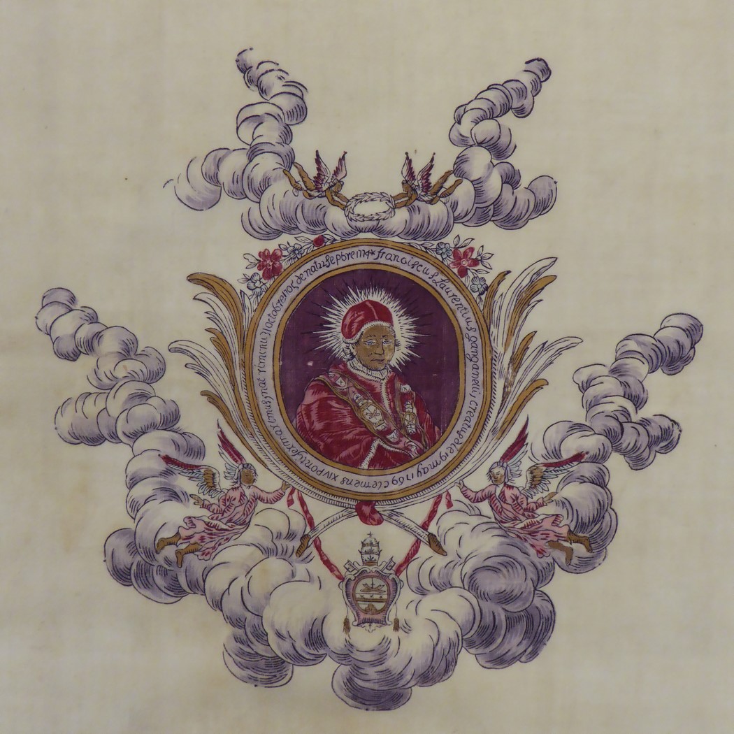 Memorie met opdruk van portret en wapens van paus Clemens XIV (1705-1774) met "Denat 22 sepbre 1774"