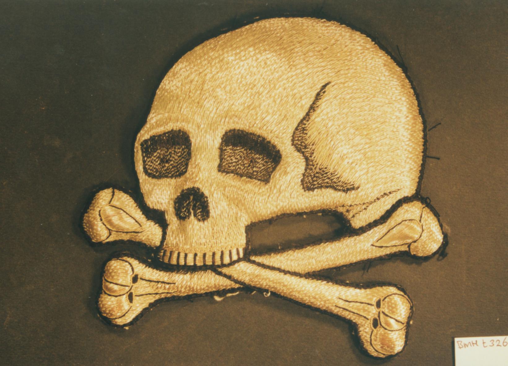 Doodskop in reliëf, verstevigd met papier