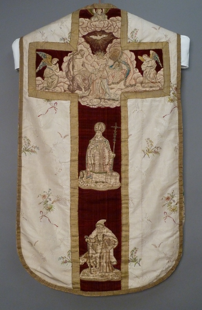 Wit kazuifel met Maria met kind, kroning van Maria, HH. Willibrordus en Antonius Abt