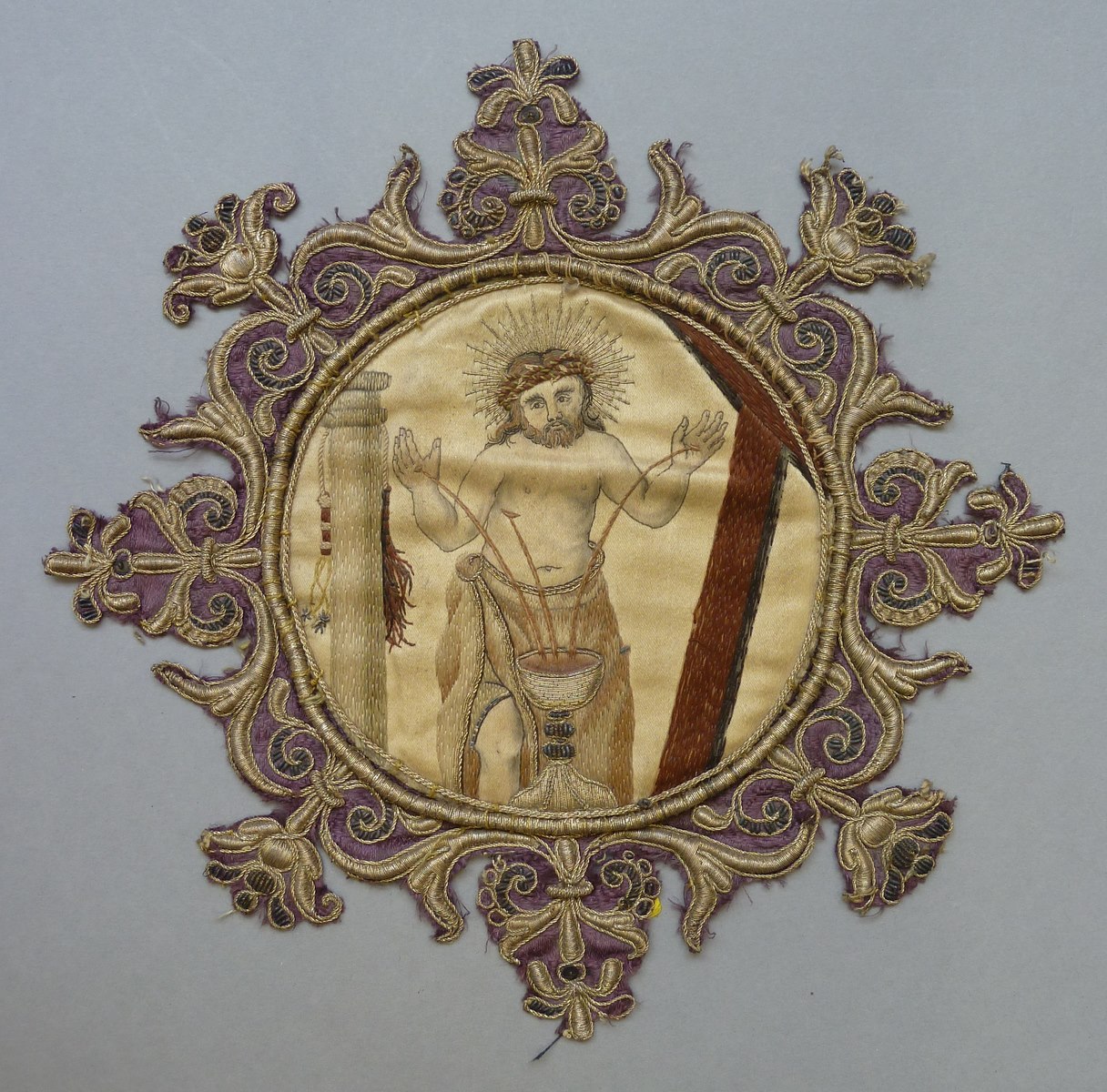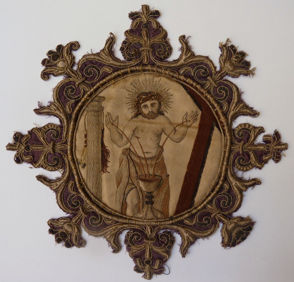 Medaillon met Man van Smarten waarvan bloed in wijnkelk vloeit