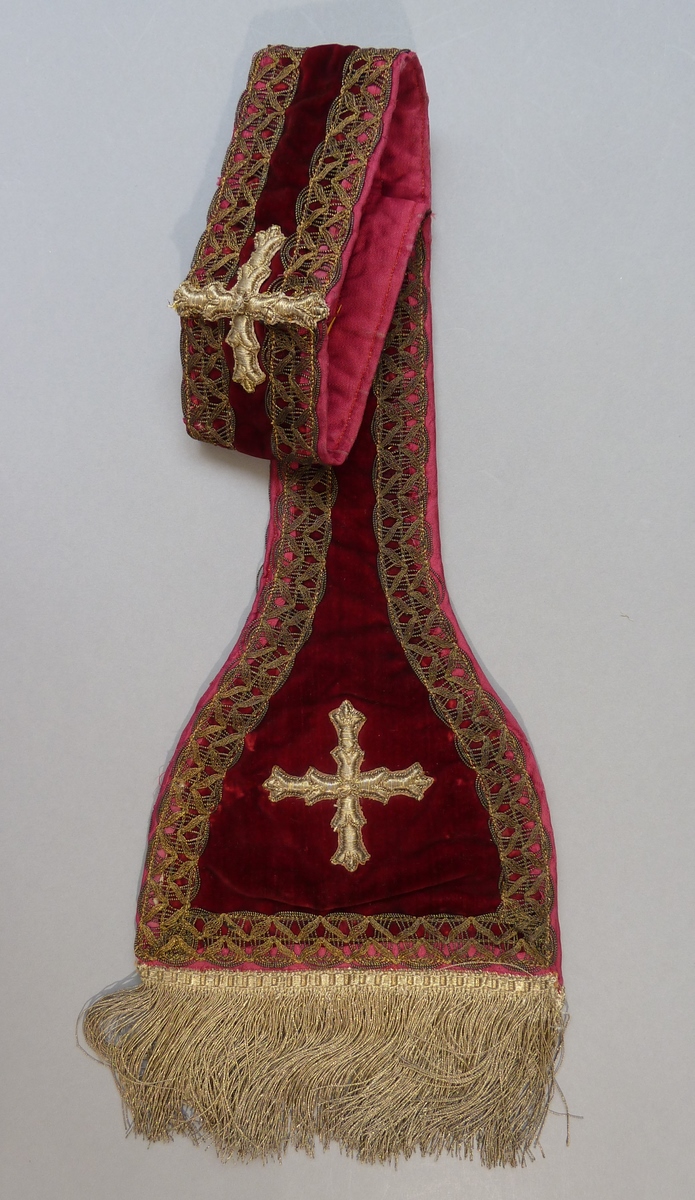 Rode manipel met kruisjes van gehoogd zilverdraad