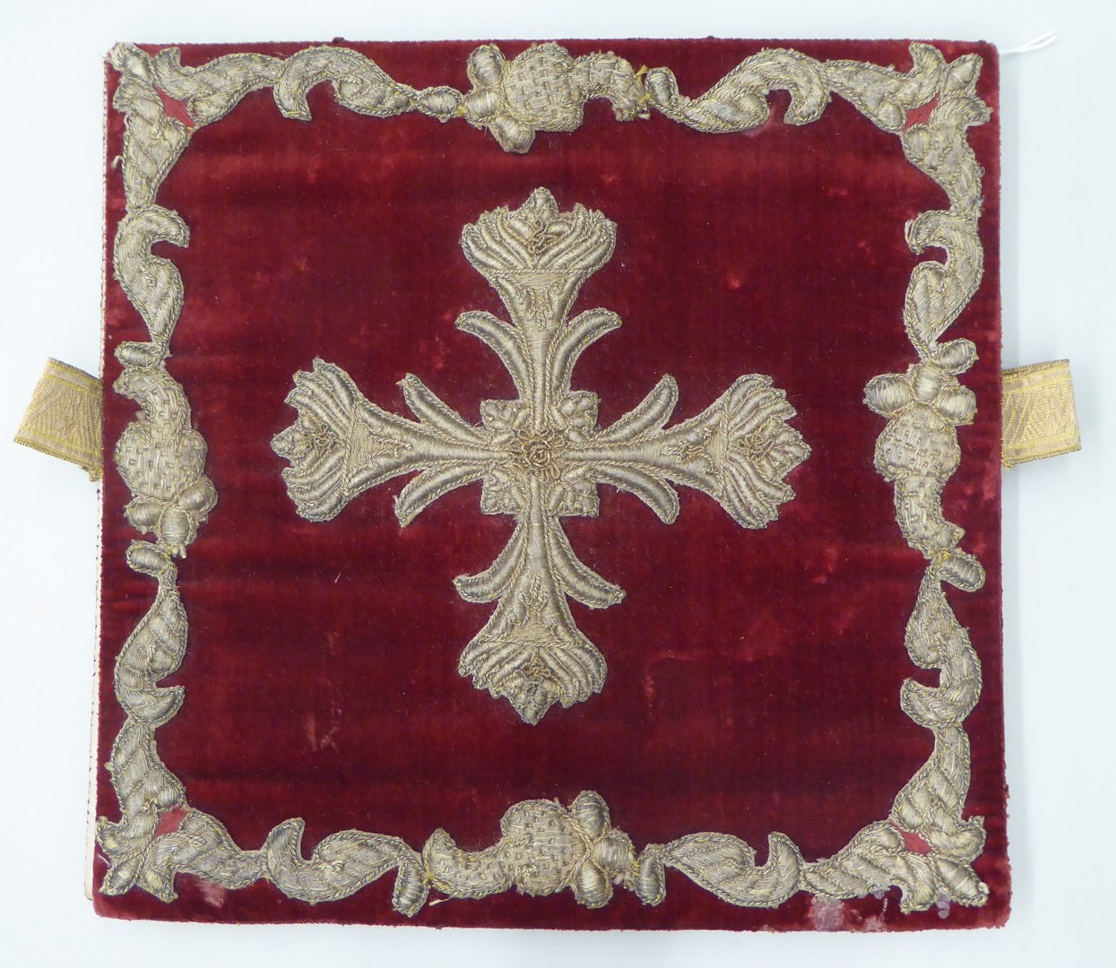 Rode beurs met leliekruis en rand van gehoogd gouddraad