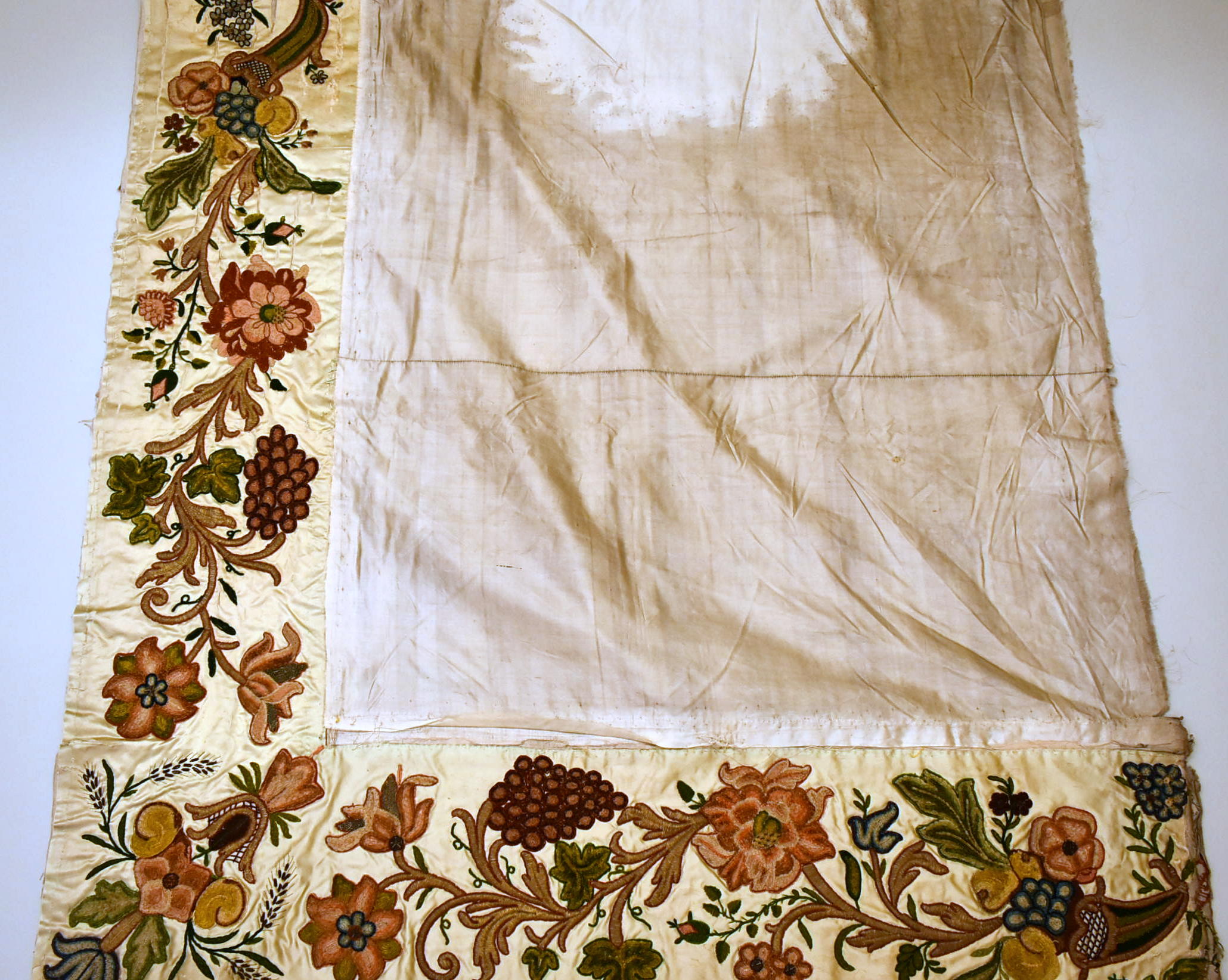Wit kleed, antependium(?) met geborduurde bloemen en franje