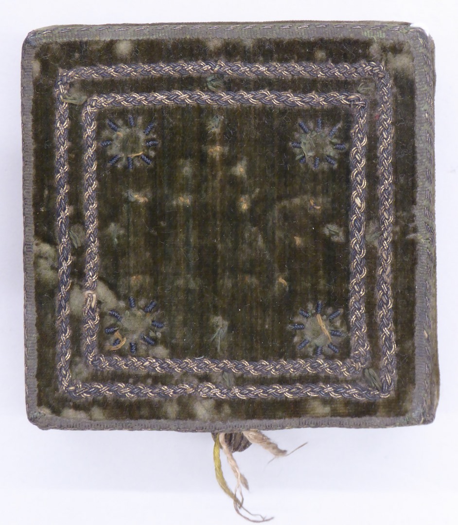 Groene ablutiedoos met borduurwerk