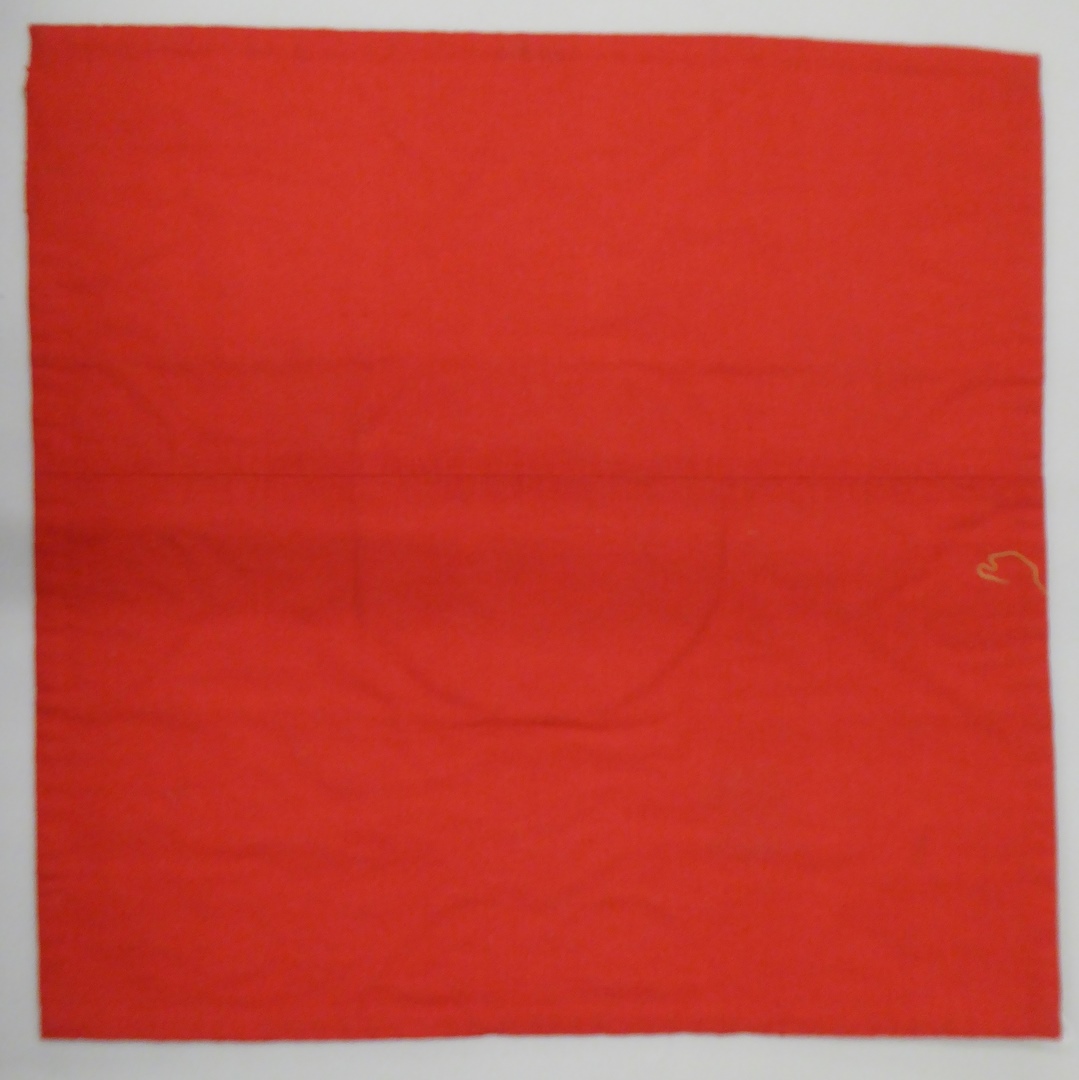 Rood kelkvelum met 'IHS' en geborduurde plantenmotieven in gouddraad