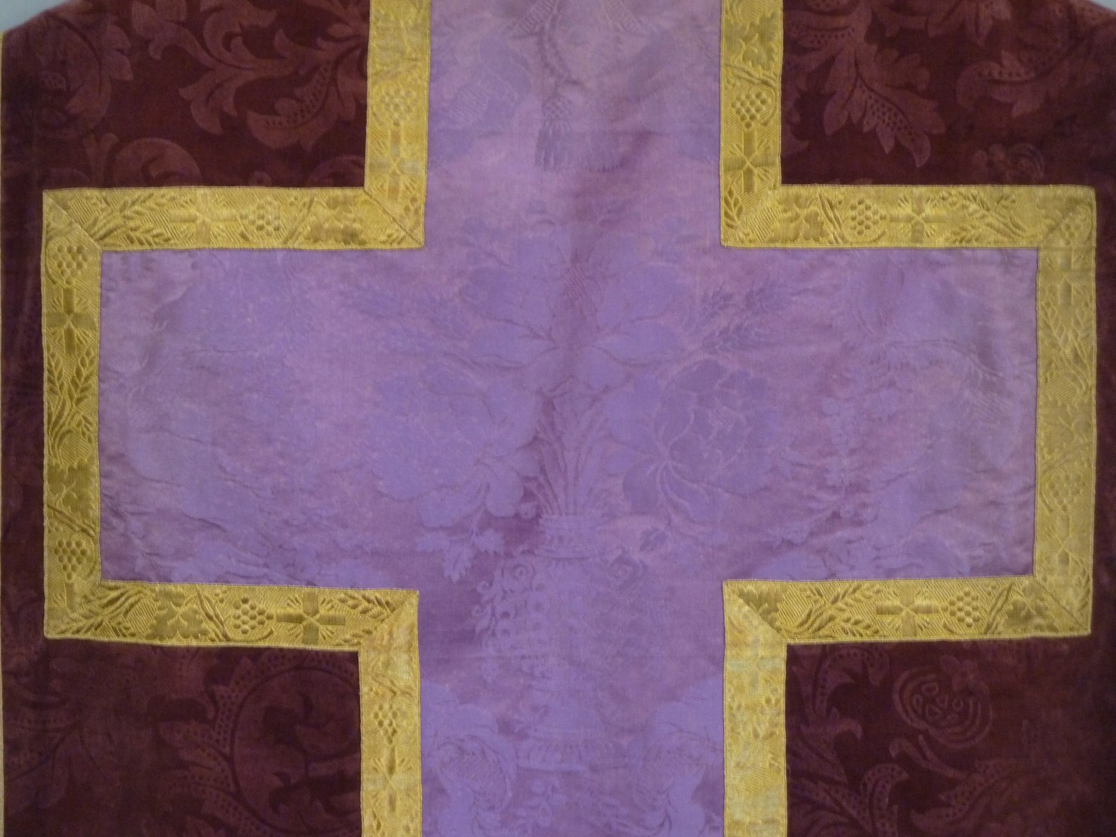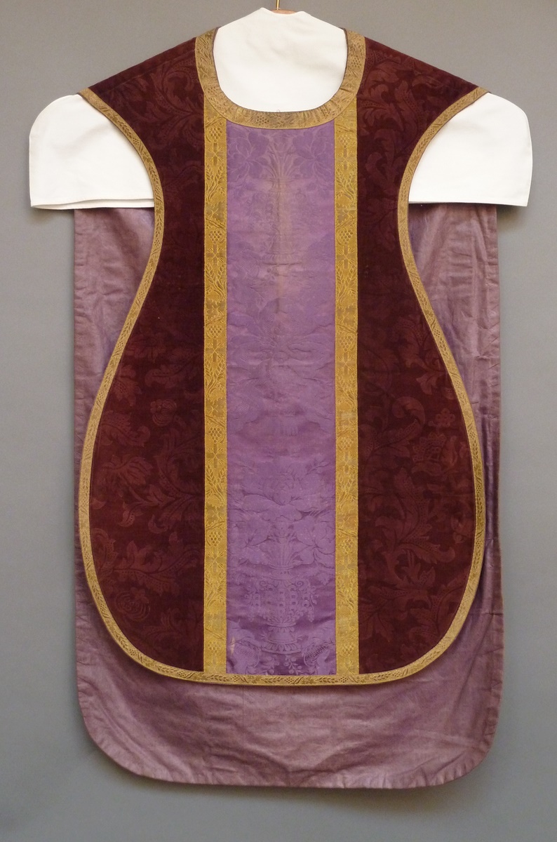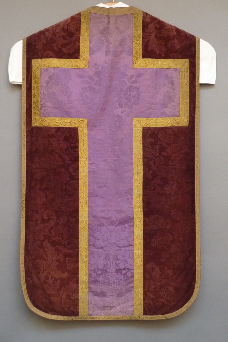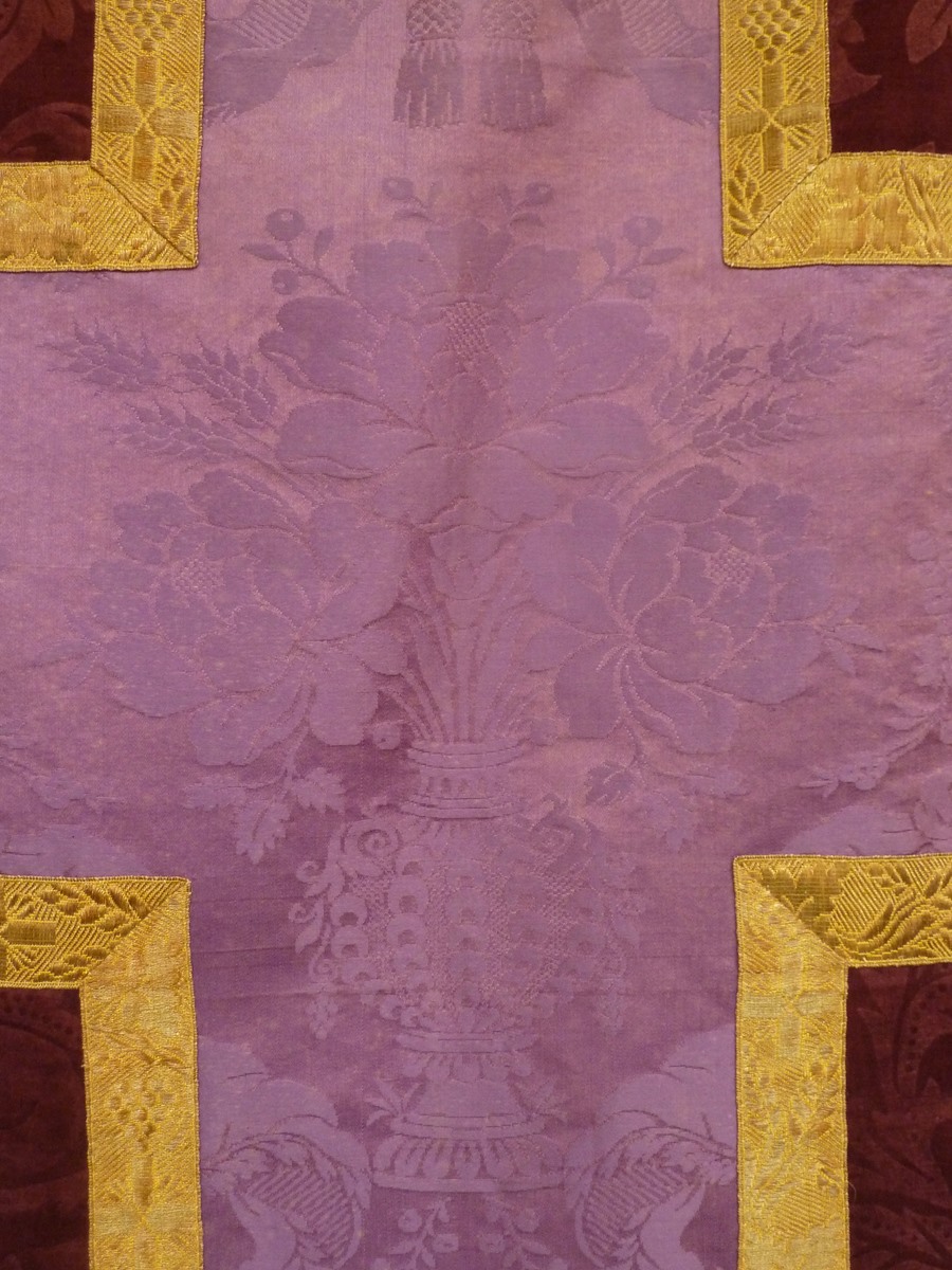 Paars kazuifel met paars kruis met ingeweven bloemranken