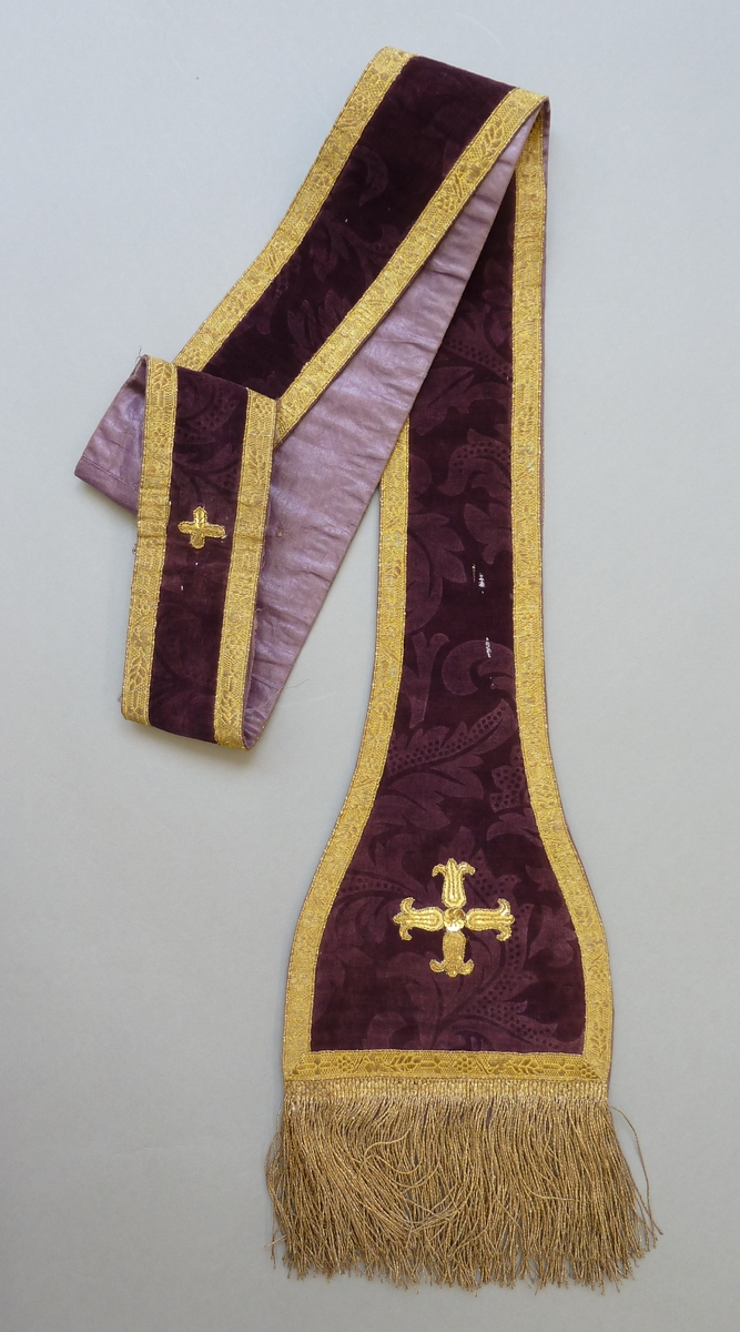 Paarse stola met goudkleurige leliekruisjes van pailletten