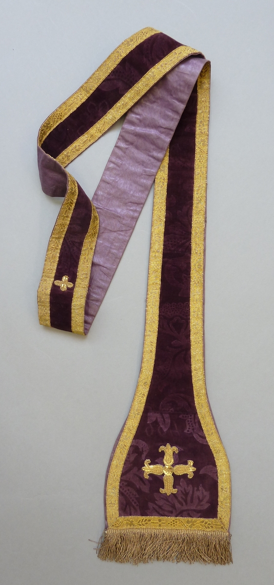Paarse stola met goudkleurige leliekruisjes van pailletten