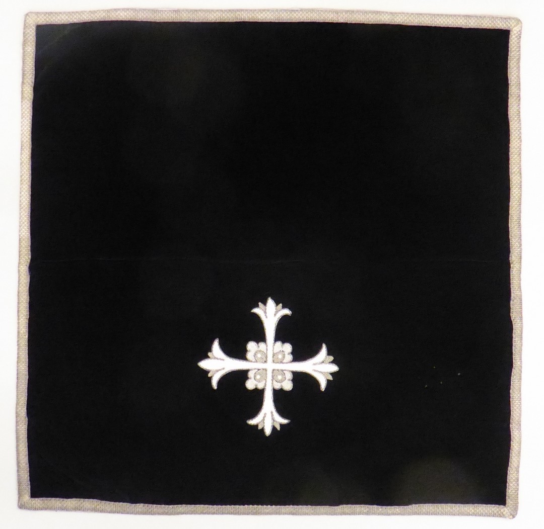 Zwart fluwelen kelkvelum met zilveren leliekruis