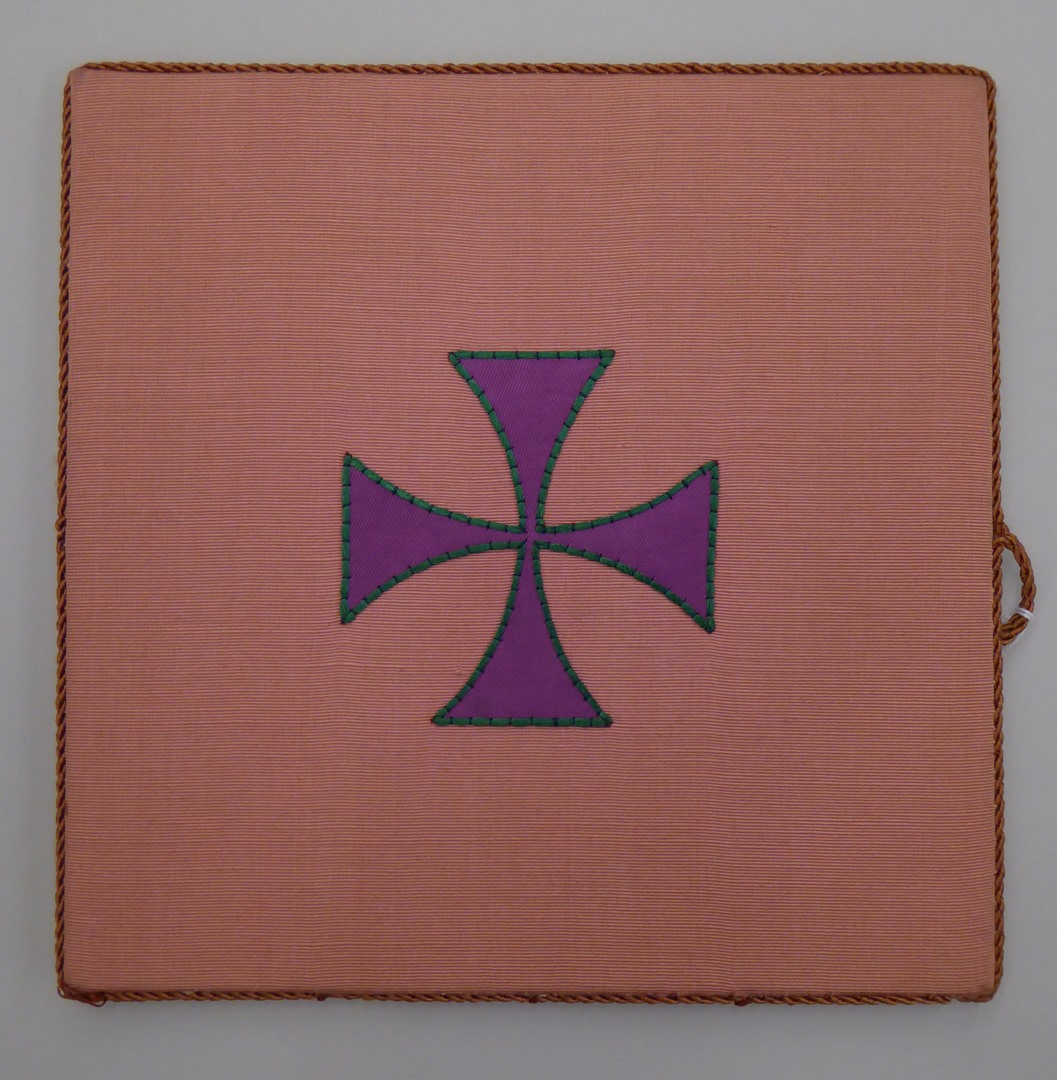 Roze beurs met paars kruis